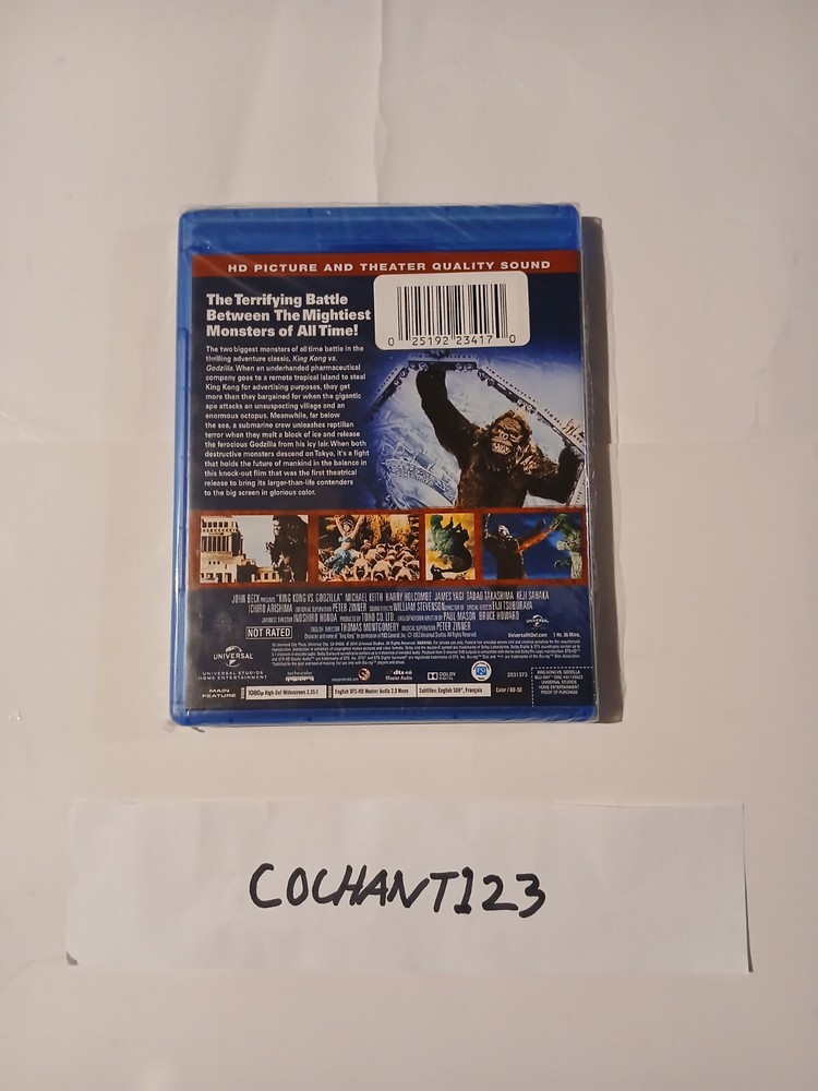 "KING KONG VS. GODZILLA (BLU-RAY) - New Sealed. Experience the epic battle between two iconic monsters in stunning high definition with this Blu-ray edition. Directed by Thomas Montgomer and Inoshiro Honda, this sci-fi classic is a must-have for fans of the genre. Region Code 1 ensures compatibility with North American players. Get ready to witness the ultimate showdown between King Kong and Godzilla in this action-packed film."