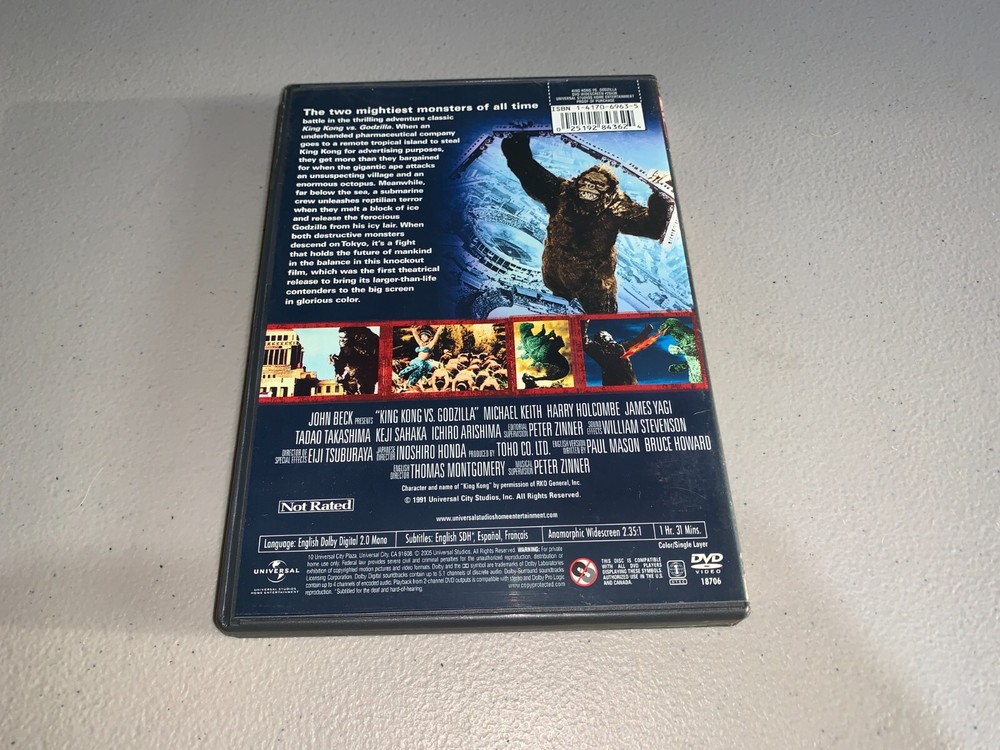 Witness the ultimate battle in King Kong vs Godzilla on DVD! 1962 Region 1 English version. Open to offers, fast shipping, and eco-friendly packaging. Photos show condition—ask questions before buying. Add this classic to your collection!