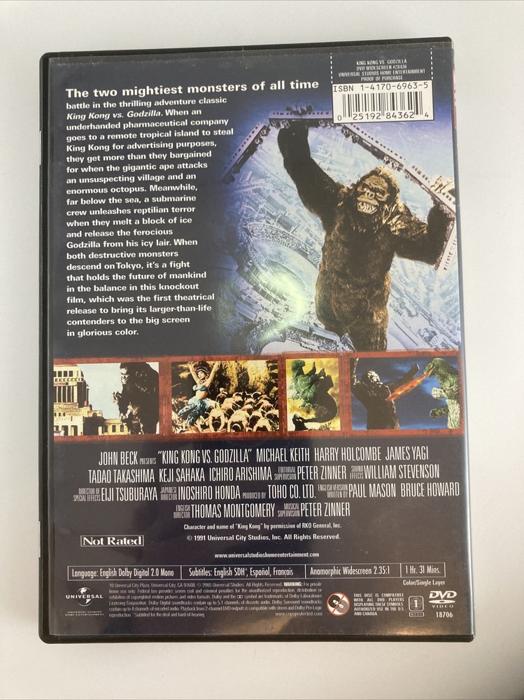 King Kong vs. Godzilla DVD Inoshiro Honda (DIR) TOHO 1962. Great movie, lots of fun. Classic kaiju. Pre-owned excellent condition. Great for a Halloween movie night. Shipped USPS Media Mail. Please check out my store for other great movies and combined shipping. Thanks for looking.