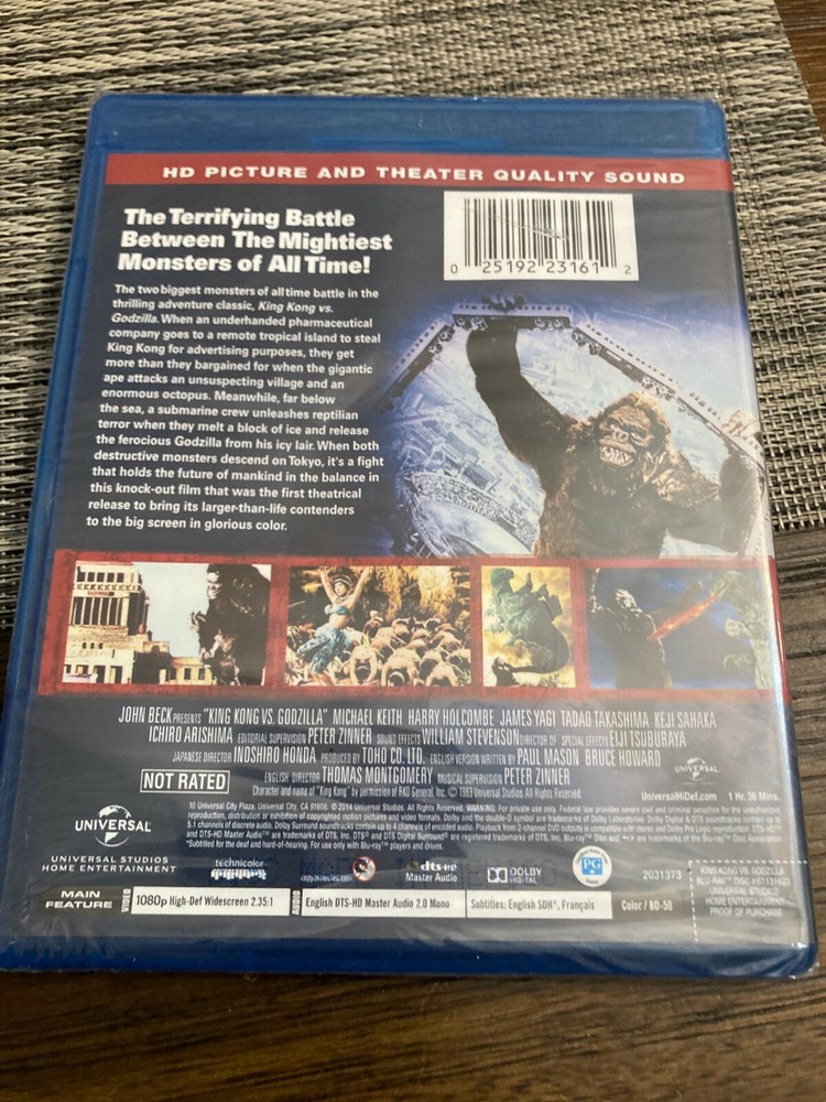 You're bidding on a NEW SEALED Blu-ray of King Kong Vs. Godzilla from Universal. This film stars Michael Keith and Harry Holcombe. We only ship to the US. All items will be shipping in a box. We do not offer international shipping. We can combine shipping. If you would like to do that, please message us or use the "Request Invoice" feature in your shopping cart. I am not a professional grader, or even an amateur one, so please look at the pictures closely. The items you are buying are the ones in the photos, so please judge for yourself but also keep in mind that there may be defects that do not show up in the photos (like tears, bends, water damage, writing, etc.) but no defects are intentionally hidden. I would just assume they're reader copies if condition is a big deal to you. The items are coming from a non-smoking home with a cat. Items are as is, all sales are final, no refunds. Check out our other auctions. We're listing more vintage stock that hasn’t seen the light of day in more than a decade!