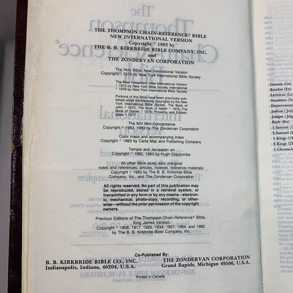 Thompson Chain-Reference Bible NIV Thumb Indexed Red Letter Edition Zondervan.