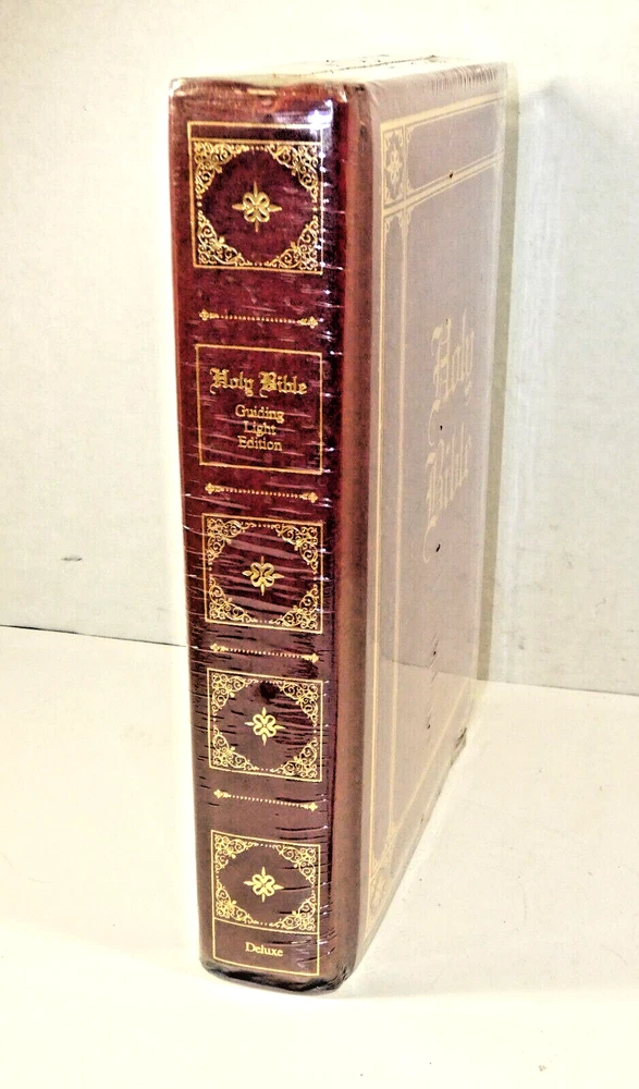 KING JAMES VERSION FAMILY BIBLE (KJV) Red Soft Leather Bound Guiding Light Edition ©1967 New Sealed Condition ________________________ Shipping and insurance is by USPS Media Mail or FedEx to the USA. Worldwide shipping by USPS Mail International. Payment is required within four days.