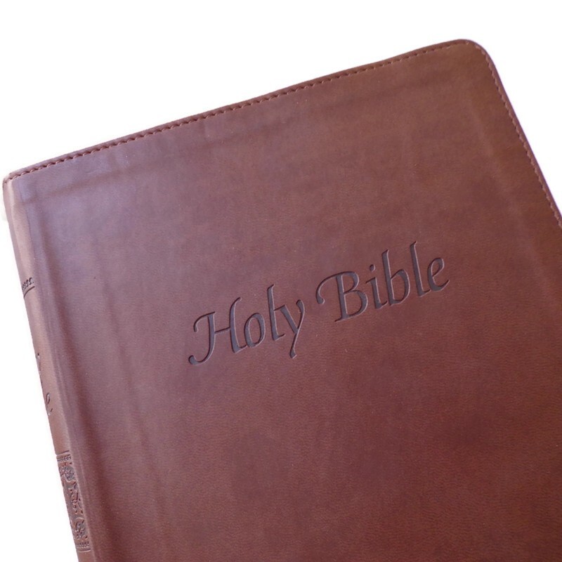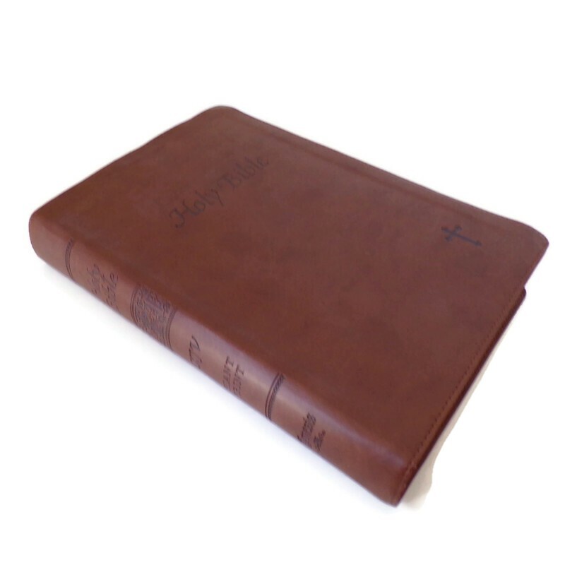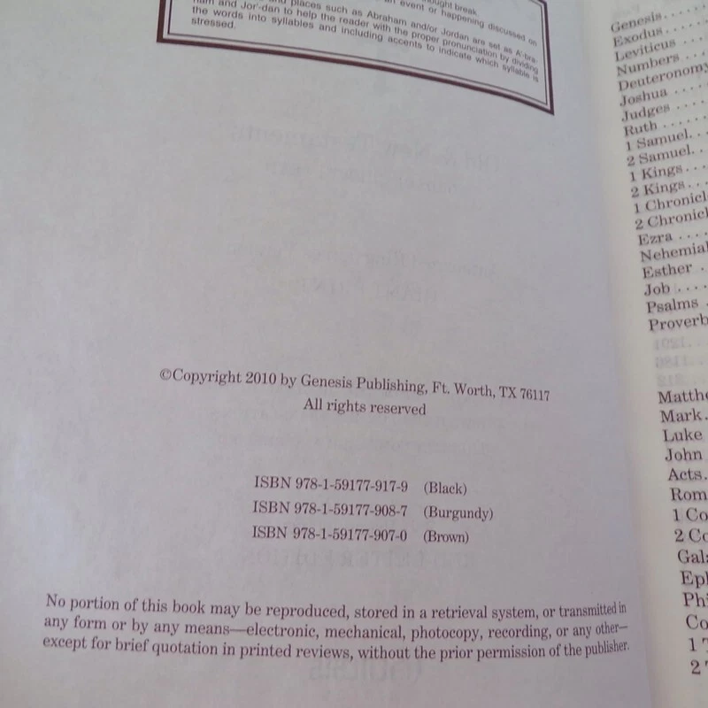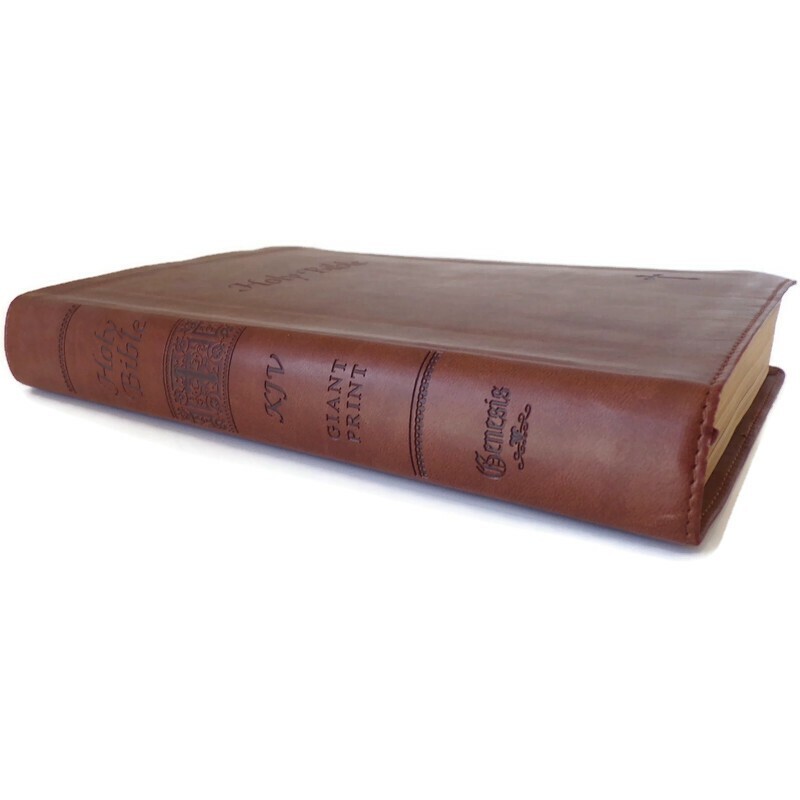KJV Holy Bible Giant Print Red Letter Leather Bound Genesis Condition: Used. Excellent Condition. Details: Publisher Genesis Bible Year December 17, 2009 ISBN 978-1-59177-907-0 Italian Leatherette Brown Gilded Edges Pages