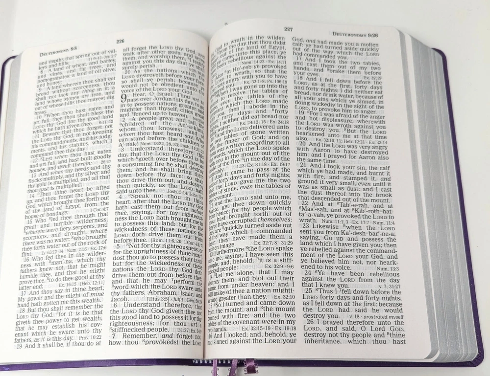 King James version giant print Bible with beautiful deep purple cover that has black scrolling. This Bible appears to be brand new with the exception of the dedication page, which is completed. Otherwise it seems this Bible has not even been opened. Please see photos. Choose your Shipping Thanks for looking! If you have any questions or concerns, please contact me before purchasing / bidding. I sincerely want you to be 100% pleased with your purchase & will do everything possible to make your experience simply perfect. Have a look at my other Holiday, vintage, unusual & collectible listings; I'm always finding interesting things! I do what I can to re-use / recycle packing material and will package your treasure with the utmost care.