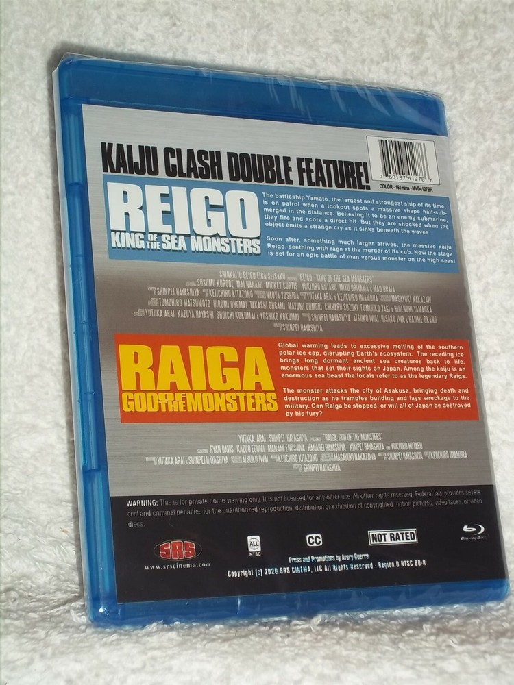 PLEASE READ BELOW BEFORE BIDDING AND ASKING ANY QUESTIONS ITEM DESCRIPTION This BLURAY is BRAND NEW!! FACTORY SEALED!! NEVER OPENED!! It includes all the original cases, covers, inserts and, of course, the disc(s) itself. DESCRIPTION: An awesome double feature of Kaiju destruction, featuring "Reigo: King of the Sea Monsters" & "Raiga: God of the Monsters" together for the first time on a double feature Bluray! REIGO - The Battleship Yamato faces off against a gigantic sea monsters in a battle for the seas. RAIGA - Global warming wakes a giant Kaiju who promptly begins attacking Japan. Will humankind survive the double assault' OUR TERMS AND GUARANTEES We will contact the auction winner(s) via email within 24 hours of auction close with any specific instructions that may be necessary to complete the transaction. We will also notify the auction winner(s) when their order has been shipped by sending an email to their ebay email address. WE DO NOT SELL illegal bootleg tapes, copies, screeners, or any type of illegally burned CDs/DVDs! ALL ITEMS ARE FACTORY ORIGINALS and, unless otherwise noted, include their ORIGINAL US factory made cases, inserts/game book and, of course, the items themselves. All DVDs are GUARANTEED. If you receive a damaged, defective or otherwise unusable item from us, please inform us within 15 days of shipment and we will replace the defective product. In the event that the defective item is no longer available, we will substitute for another item, credit your account or issue a refund minus the Shipping. Buyer must make contact within 3 days of the end of auction and payment must be made within 10 days of the end of auction. Please have funds ready to send when you are bidding. Your personal information will never be shared or sold to anyone. Your transaction is strictly confidential, and you will receive your product in discreet packaging . Finally, there should NEVER be a reason to leave us negative feedback. That is NOT the proper way to get our help with a problem, just contact us and give us a chance to provide an appropriate solution. Permanently hurting our reputation by leaving us negative feedback or threatening negative feedback will NOT get you the service you are looking for, again, just email us if you have a problem with your purchase. PAYMENT TERMS Payment is expected within 10 days after the auction closes. Please include the following with your payment: Username Auction number(s) Item name Shipping Address We accept the following forms of payment: . PAYPAL Credit Cards (Contact us for details) SHIPPING TERMS Your DVD(s) will be shipped within 48 hours of receipt of payment. All DVDs will be shipped discreetly . The flat rate shipping fee using USPS FIRST CLASS MAIL is $ 3.00 for the 1st DVD, $2.00 for each additional within the USA . International orders, INCLUDING CANADA, using USPS AIRMAIL are $20.00 for the first DVD, $5 for each additional. Rush and Expedited shipping options are available to most areas; please feel free to contact us for pricing and other details regarding the auction. I COMBINE SHIPPING Please View Our Other Auctions And Save On Shipping Powered by SixBit's eCommerce Solution