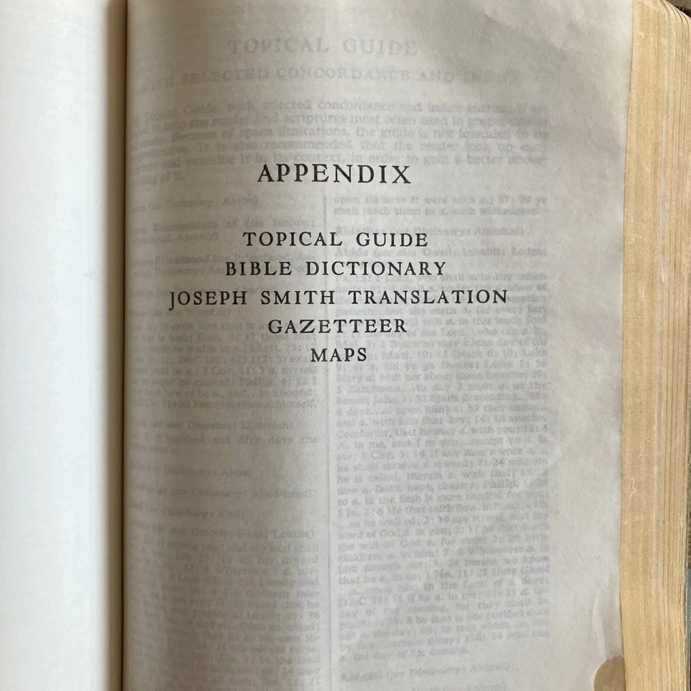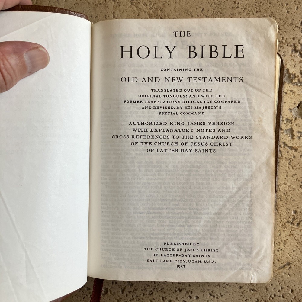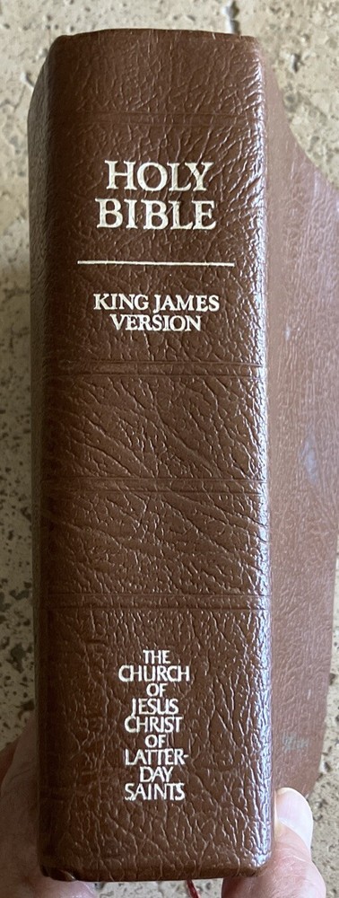 This King James Version Holy Bible is a vintage piece that was published in 1983 by the Church of Jesus Christ of Latter Day Saints. It comes in a bonded leather cover and has a topical guide for easy reference. The Bible is written in English and has a total of x number of pages. The book measures 7.25" in length and 5.25" in width, with a height of 2". It is perfect for adults who are looking for a prayer book. The Bible is not personalized and is not signed by anyone. It is a great addition to any collection and is a must-have for anyone who wants to study the King James Version. Please see all photos. If you are unhappy with item,please contact me to resolve the problem before opening a case,I value your business and work hard to keep a top seller rating, Thank You!
