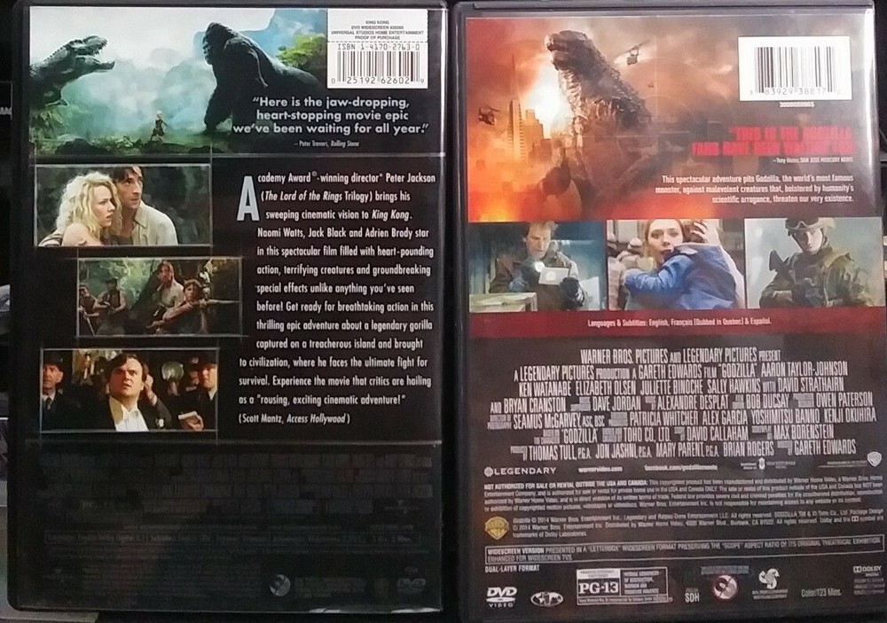 King Kong 2005 & Godzilla 2014 DVDs (Widescreen Edition/With Case/VGC). No scratches or blemishes. Shipped USPS Media Mail 2-10+ day with tracking. Items ship within 3 days of purchase. Keep in mind recent changes with USPS and distance can greatly affect delivery time.
