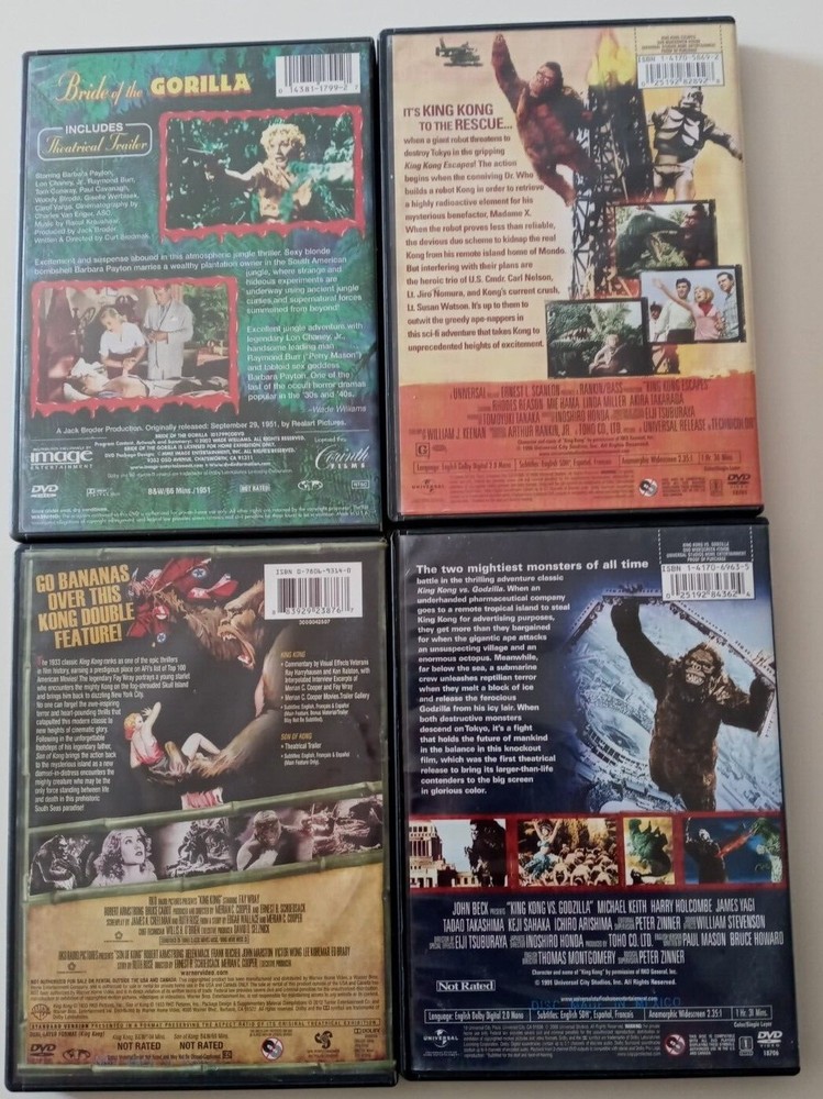 King Kong Lot of 4 DVD with 5 Movies includes: King Kong vs. Godzilla King Kong Escapes Kong Collection: King Kong & Son of Kong Bride of the Gorilla
