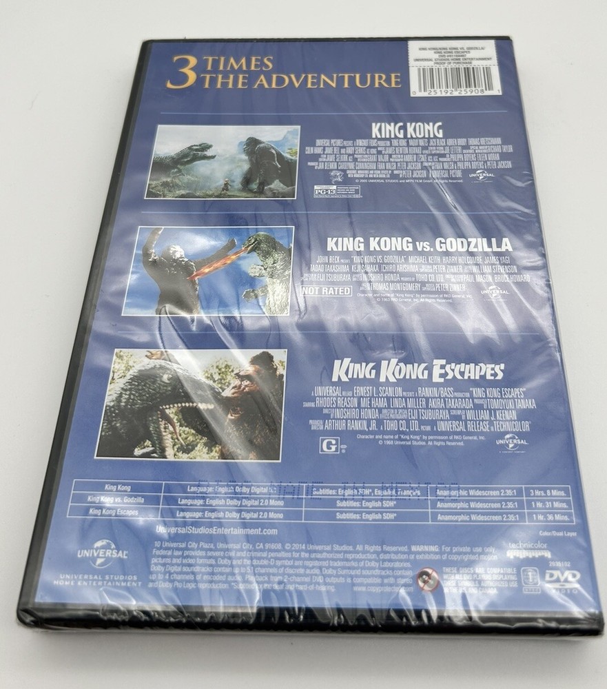 Up For Auction Here: NEW DVD TRIPLE FEATURE KING KONG KING KONG VS GODZILLA KING KONG ESCAPES Payment is due within 3 days of auction ending. I will ship out within 2 BUSINESS DAYS of cleared payment....