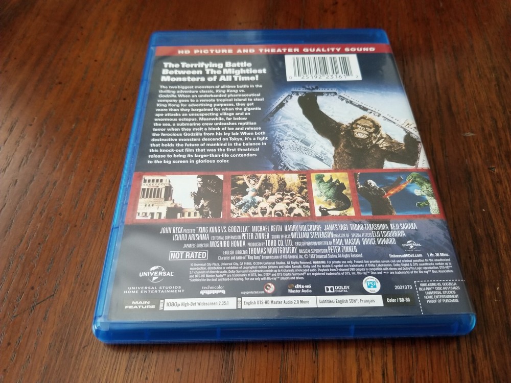 This Blu-ray disc features the epic battle between King Kong and Godzilla, two iconic giants of the monster film genre. Released in 1962 by Universal Studios, this classic movie is a must-have for fans of science fiction, action, and adventure. The disc is in excellent condition and has been well cared for, ensuring a high-quality viewing experience for the buyer. Don't miss out on the opportunity to own this thrilling movie on Blu-ray.