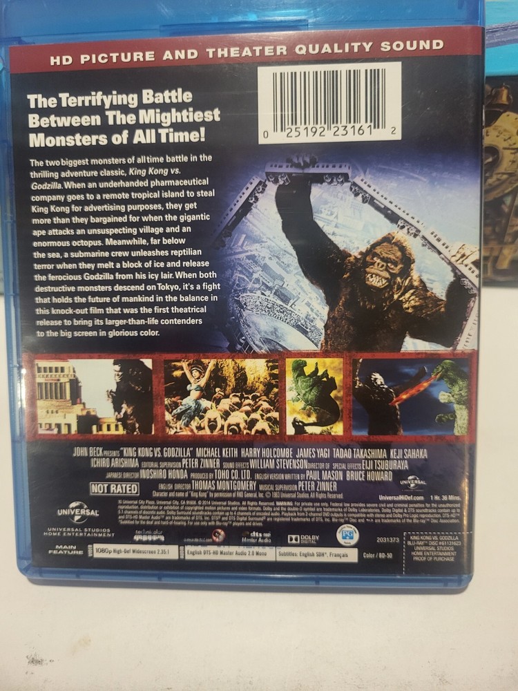 This classic 1962 science fiction film on Blu-ray features the epic battle between King Kong and Godzilla. Produced by John Beck and Tomoyuki Tanaka, and directed by Ishiro Honda and Thomas Montgomery, this action-packed adventure will keep you on the edge of your seat. With a rating of NR, it's suitable for all ages. This edition from Universal Studios is a must-have for fans of the genre and collectors alike. The stunning visuals and thrilling storyline make it a timeless classic that will always be a favorite. Don't miss your chance to own a copy of King Kong Vs. Godzilla on Blu-ray.