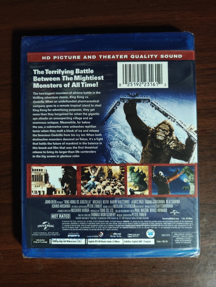 "King Kong Vs. Godzilla" is a Blu-ray release from 2014. Directed by Ishiro Honda and Thomas Montgomery, produced by John Beck and Tomoyuki Tanaka, it falls under the Action & Adventure genre with a sub-genre of Science Fiction. The movie features the epic battle between King Kong and Godzilla and is distributed by Universal Studios. This Blu-ray edition offers high-definition viewing of the classic film.