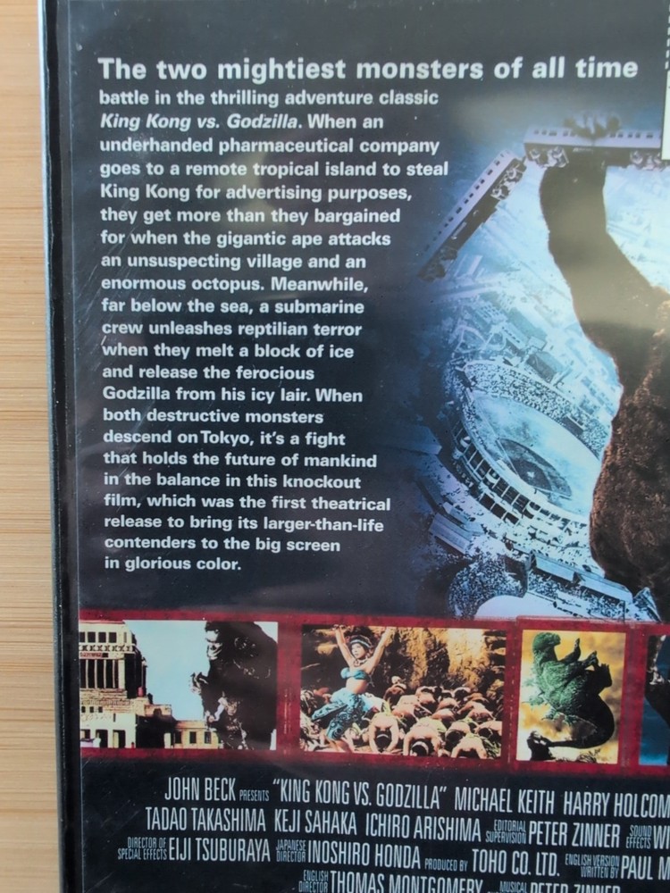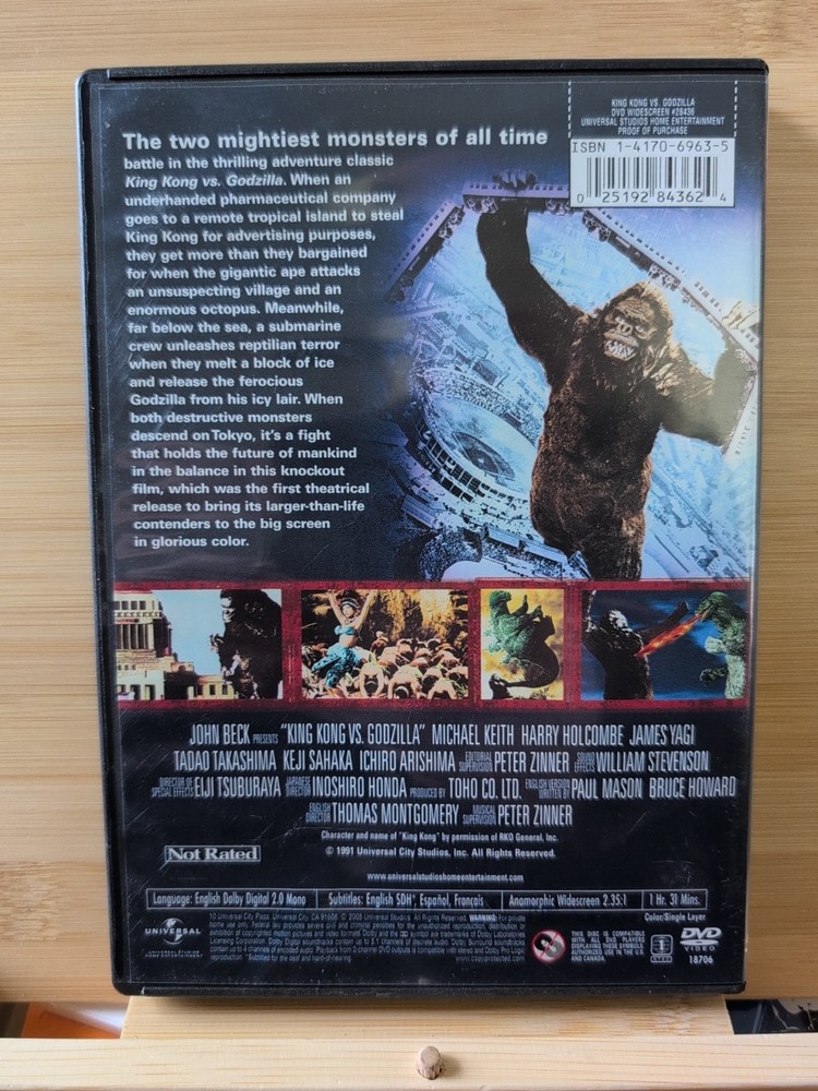 This classic 1962 science fiction film features the epic battle between King Kong and Godzilla. With a runtime of 91 minutes, this DVD is a must-see for fans of action and adventure. The film is produced by John Beck and Tomoyuki Tanaka, and directed by Ishiro Honda and Thomas Montgomery. The DVD comes with English, French, and Spanish subtitles and is in the format of DVD. The movie title is "King Kong Vs. Godzilla" and is categorized under "Movies & TV" and "DVDs & Blu-ray Discs". The film is in the action and adventure genre and is rated NR. The studio is Universal Studios. Get ready to experience an epic adventure with this classic film.