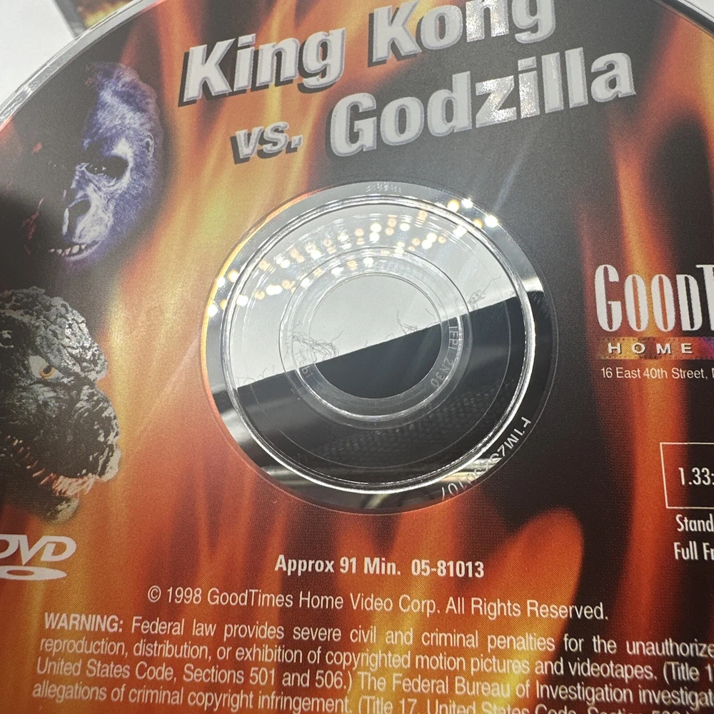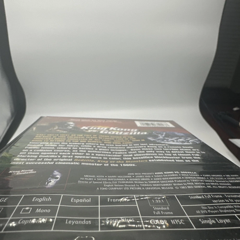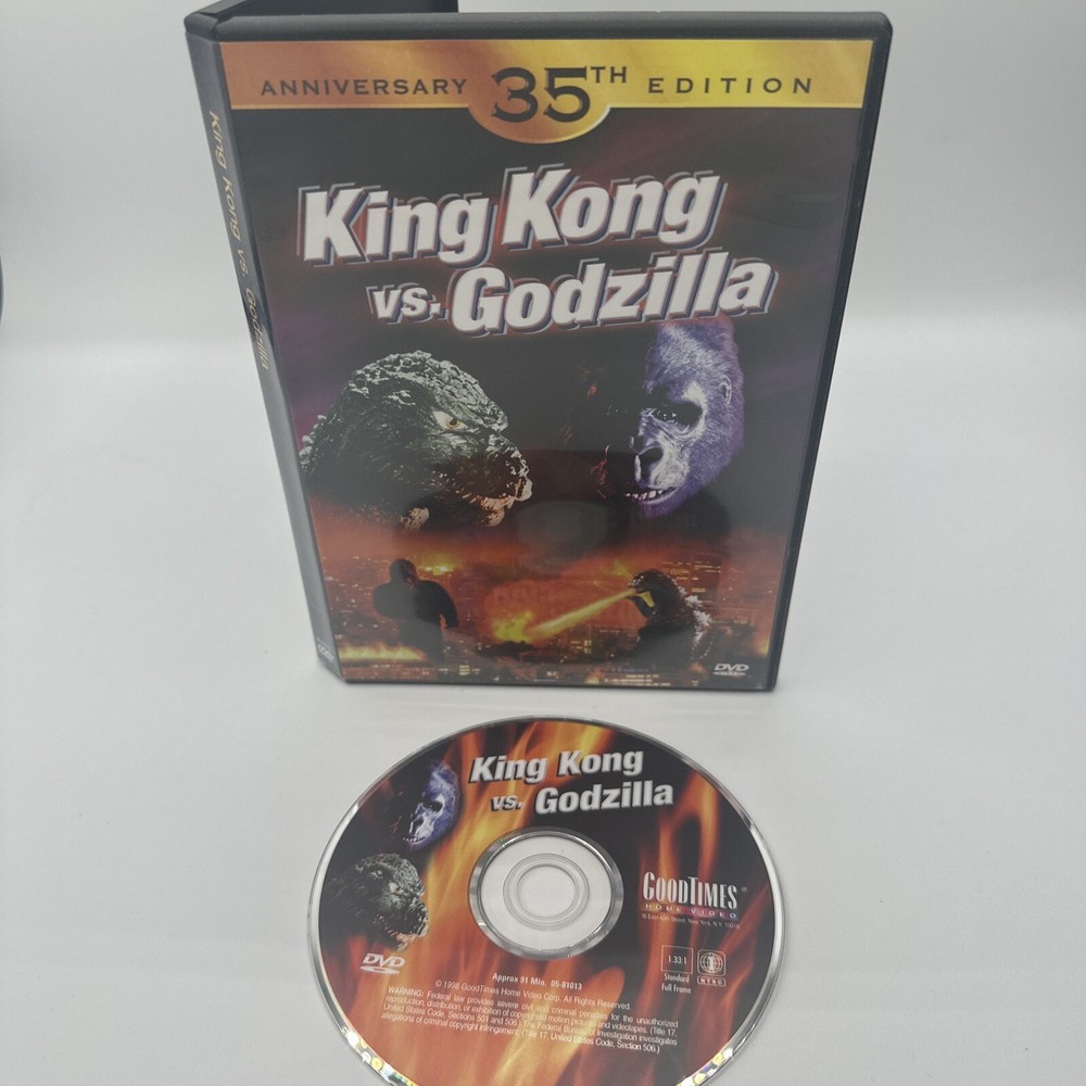 Get ready for a classic monster battle with King Kong Vs. Godzilla (DVD, 1998, Anniversary 35th Edition)! This film is perfect for fans of horror and suspense, and features two of the most iconic creatures in movie history. Directed by Thomas Montgomery, this G-rated film will keep you on the edge of your seat from start to finish. The DVD is in excellent condition, with no scratches or damage. It's the perfect addition to any movie collection, and is sure to provide hours of entertainment. With its stunning visuals and thrilling storyline, King Kong Vs. Godzilla is a must-see for any movie buff. Please look at the pictures closely for any condition reference. This is a used video but it is in good condition. The disc has zero scratches as shown in the picture I ship quickly Things