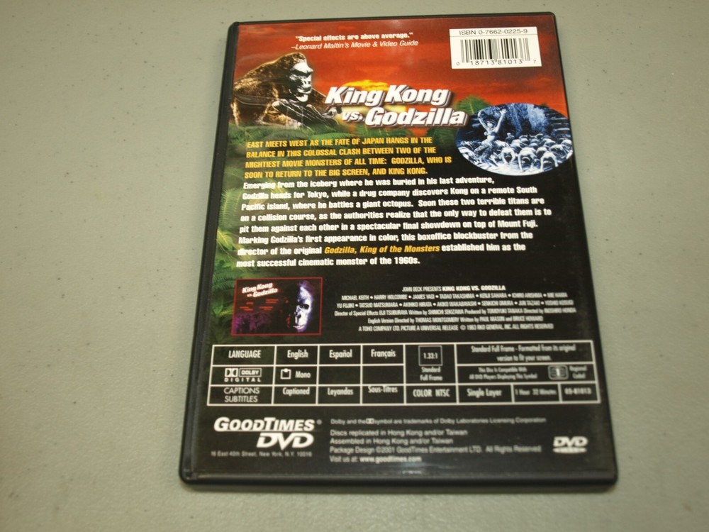 All used disc's are tested that they work before listed. I will give a description on the condition of the disc only. Most used cases usually have some minor wear on them. See photos for condition of cases. If the disc comes with a insert I will list it. If the description does not say "with insert" than it does not have one. I ship out super fast. Sometimes the same day I receive payment.. Check my feedback. All my customers are very happy. If you ever have a question or a problem with your order just contact me and I'll do my best to solve it. Please make sure your shipping address is correct before buying. I will only ship to the address that is listed with your account. King Kong Vs. Godzilla (DVD, 1998, Anniversary 35th Edition) RARE. THE DISC HAS A FEW LITE SCRATCHES.. PLAYS GREAT. COMES WITH INSERT. ***FREE SHIPPING****