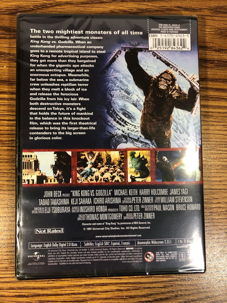 This DVD is a must-have for monster movie fans! The epic battle between King Kong and Godzilla is thrilling, and the picture quality is great. Brand new and sealed, it’s perfect for collectors. A classic that never gets old!