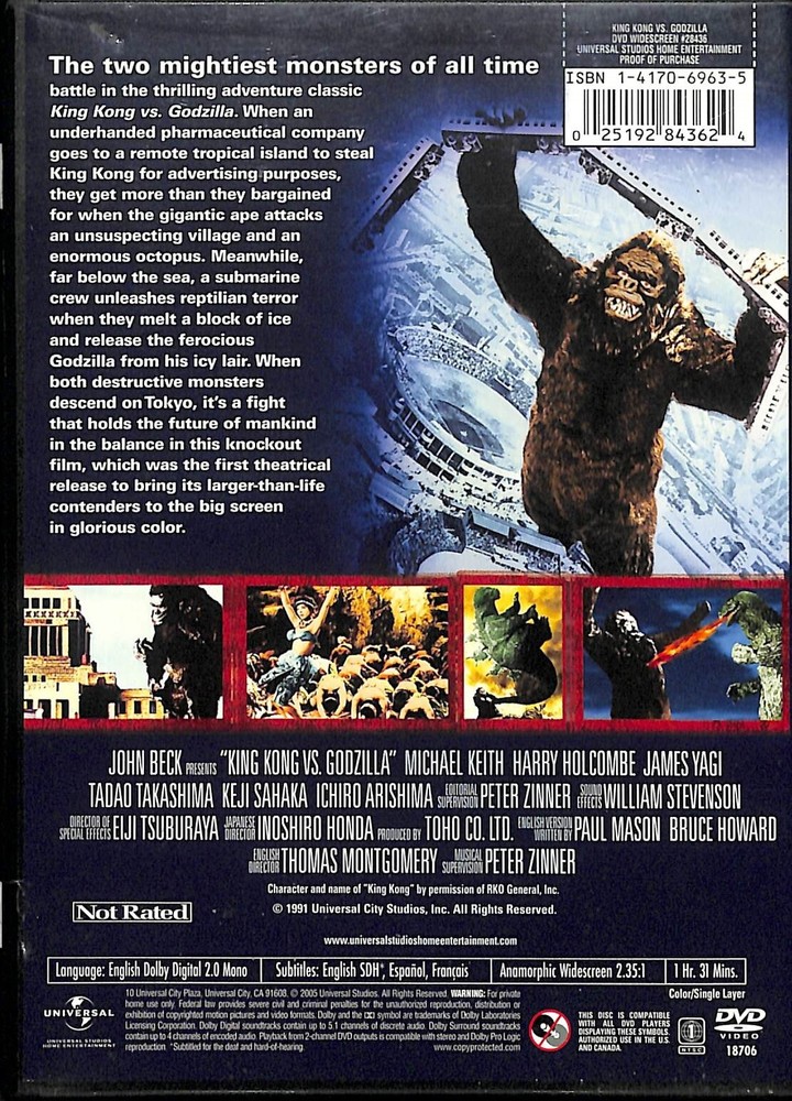 King Kong Vs Godzilla DVD Tadao Takashima-Barely Used Check out our store at: HarmonyCollectibles