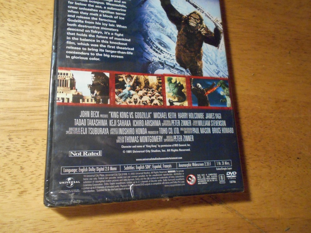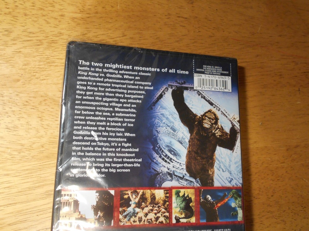 King Kong vs. Godzilla (DVD, 1962) BRAND NEW Factory SEALED. The seal has tear on side where it is oppened. We will gladly combine shipping on all our stuff. Just let us know and we will combine the items and charge one shipping charge for all items. Then we will refund the extra shipping We are family run online business. We strive to maintain the highest level of customer satisfaction. If on the rare occasion a buyer is dissatisfied with a purchase they have made from our store please contact us to discuss the matter BEFORE you leave feedback. Feedback for buyers is set up automatically and left once it has been left for us. Thanks for checking us out. Box (DVD 11)