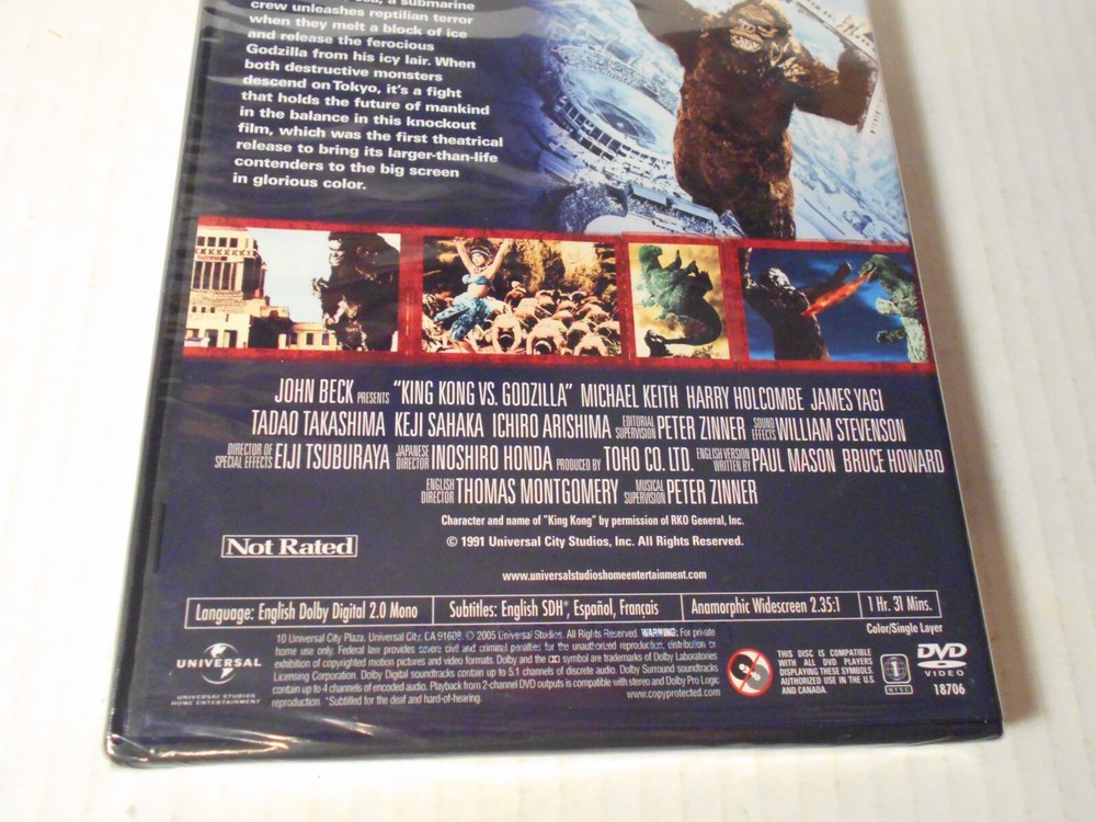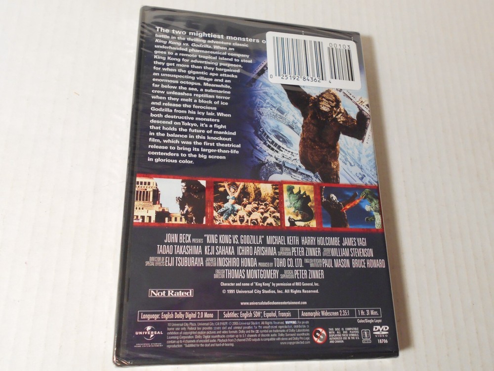 King Kong vs. Godzilla DVD Widescreen New Factory Sealed. Some light wear on seal. Pictures are all original and of the exact Item you will receive. All our items are original, n fakes or bootlegs. We have lots of Cool other Fun Stuff on Ebay. Just let us know and we will combine the items and charge one shipping charge for all items. Then we will refund the extra shipping. We only ship to official Ebay address. Comes from clean, Non Smoking home. We are family run online business. We strive to maintain the highest level of customer satisfaction. If on the rare occasion a buyer is dissatisfied with a purchase they have made from our store please contact us to discuss the matter BEFORE you leave feedback. Feedback for buyers is set up automatically and left once it has been left for us. Thank You Box (DV-25)
