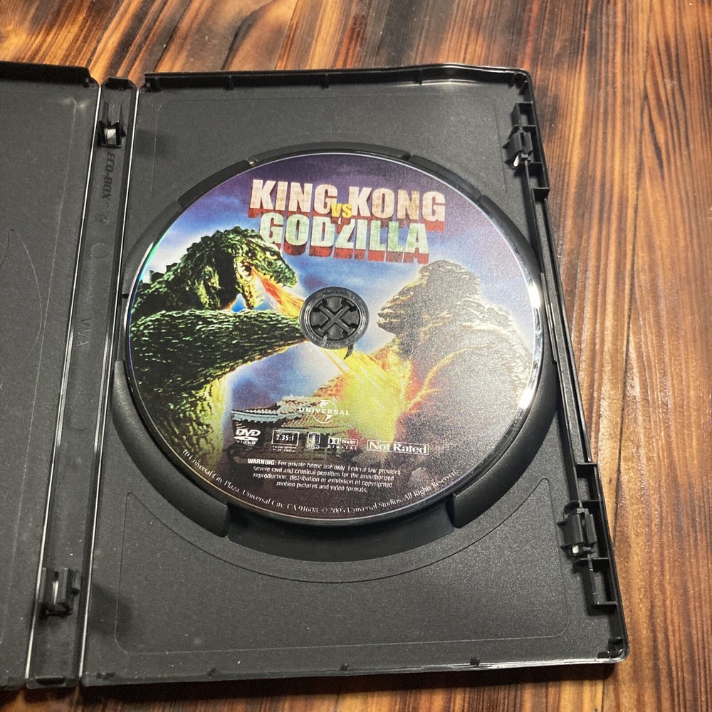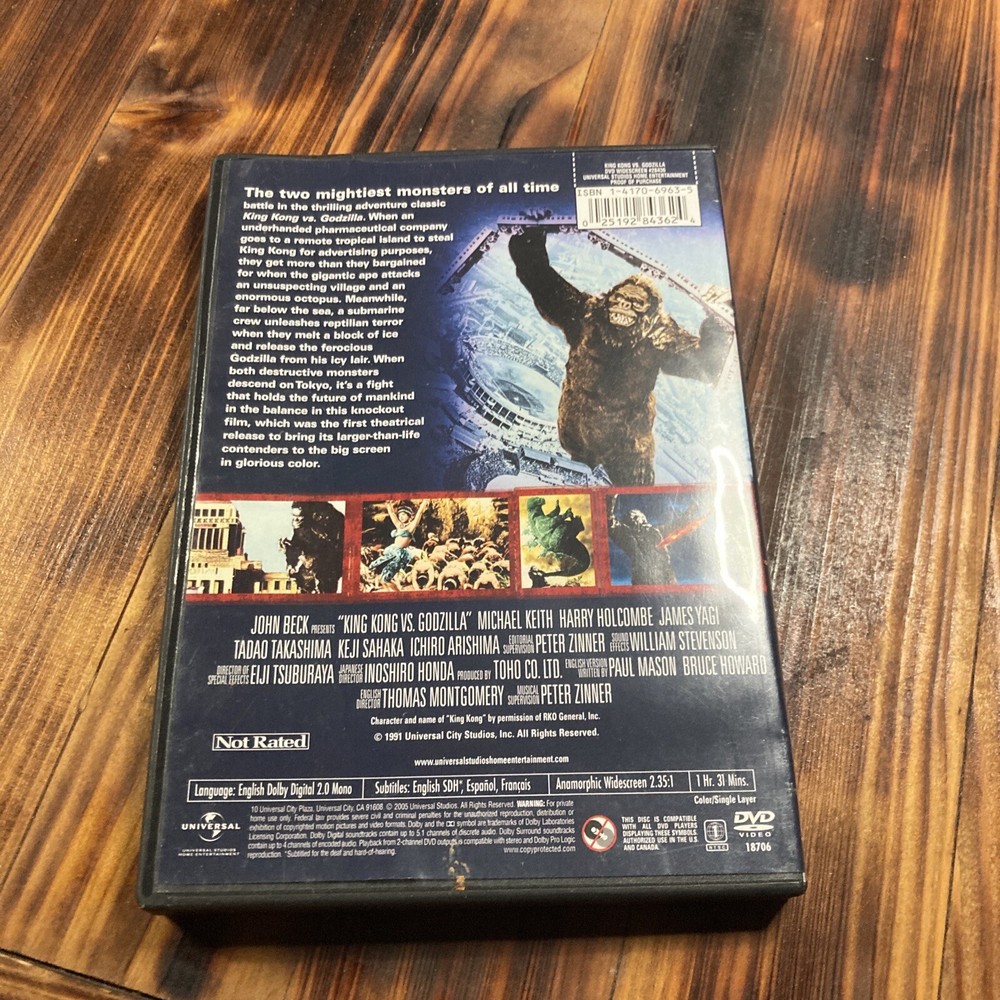 Get ready for an epic battle between two giants in "King Kong vs. Godzilla" DVD. This action-packed movie features thrilling scenes of a colossal fight between the towering King Kong and Godzilla, the legendary creature that breathes fire. The DVD format ensures that you can enjoy the movie in high-quality picture and sound, making it a perfect addition to your movie collection. This science-fiction movie is rated NR and combines elements of adventure, action, and suspense. It is a must-have for fans of both the legendary creatures and the genre. "King Kong vs. Godzilla" DVD is brought to you by Universal Studios, and it is an excellent choice for anyone looking for a thrilling movie experience.