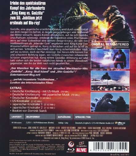 This Blu-ray delivers an epic clash between King Kong and Godzilla in stunning quality! The action is intense, and the classic Ishirô Honda direction shines. Just make sure your player supports Region B—otherwise, it’s a must-have for kaiju fans. The German release adds a cool touch, and the restored visuals are fantastic. Highly recommended!