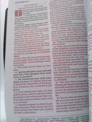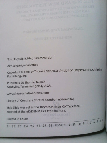 Kjv, Sovereign Collection Bible, Personal Size, Genuine Leather, Black, Red Letter Edition, Comfort Print: Holy Bible, King James Version by Thomas Nelson Minor shelf and handling wear, overall a clean solid copy with minimal signs of use. The words of Christ are in red; the font size is regular. Covers betray fading and nicks and other signs of wear and imperfection commensurate with age. Binding is tight and structurally sound. Pages without any extraneous marks. Sealed in plastic for shipping. Secure packaging for safe delivery.