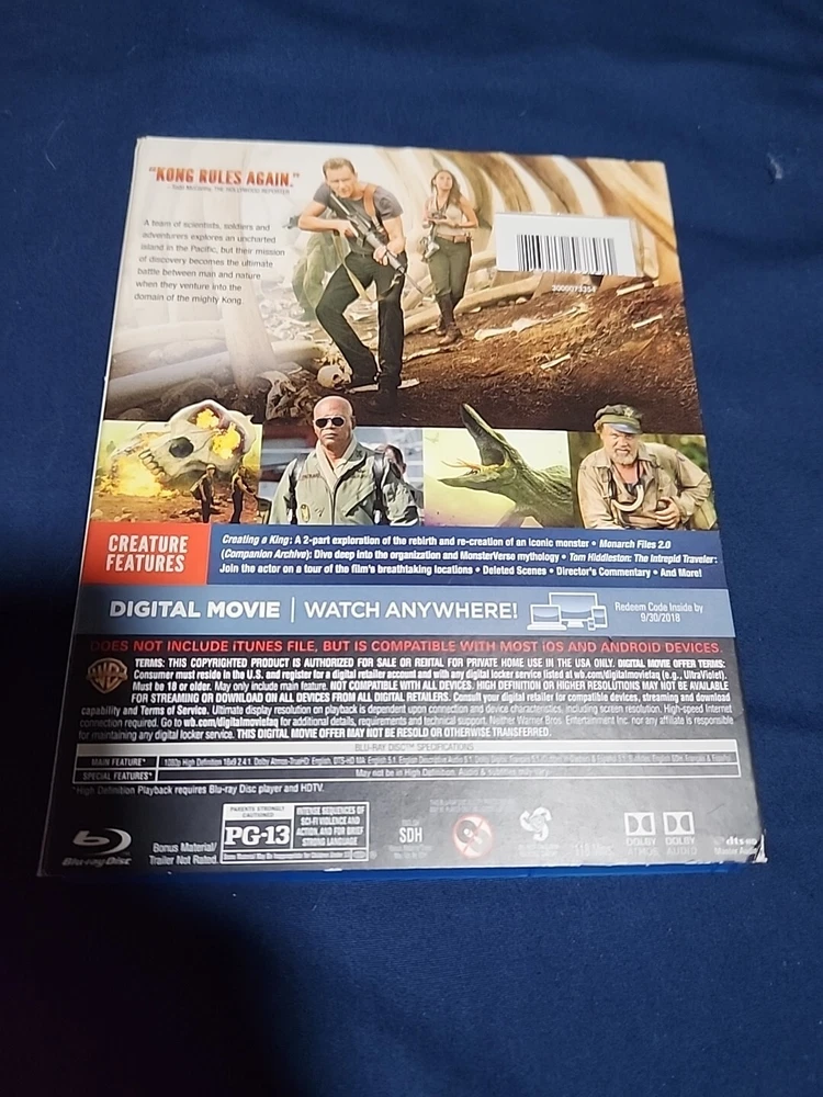 Experience the ultimate adventure with "Kong: Skull Island" on Blu-Ray/DVD. This 2-disc set features the action-packed and thrilling movie directed by Jordan Vogt-Roberts, starring Tom Hiddleston, Samuel L. Jackson, John C. Reilly, and John Goodman. The movie takes you on a journey to a mysterious island filled with creatures, action, adventure, and monsters. The DVD edition year is 2017 and comes in a Blu-ray case. The movie is rated PG-13 and has English subtitles. The features of this edition include commentary, additional scenes, and a behind-the-scenes featurette. The aspect ratio is 16:9 and the region code is Blu-ray: A (Americas, Southeast Asia...). This Target Exclusive edition is a must-have for fans of the Kong vs Godzilla franchise and is perfect for any movie lover's collection.