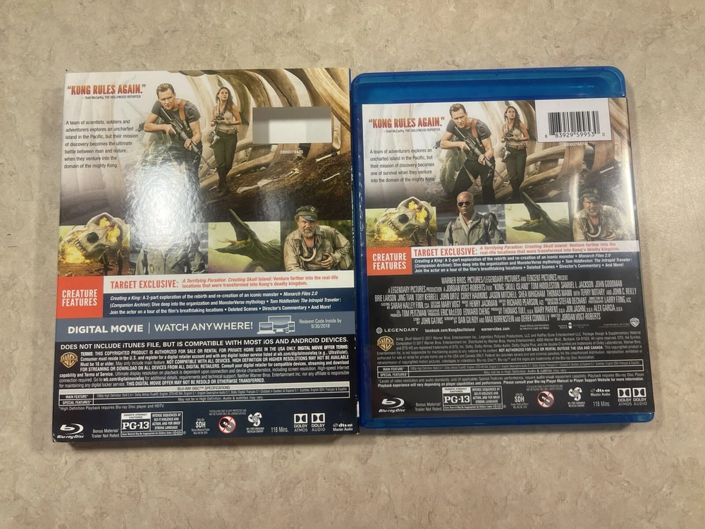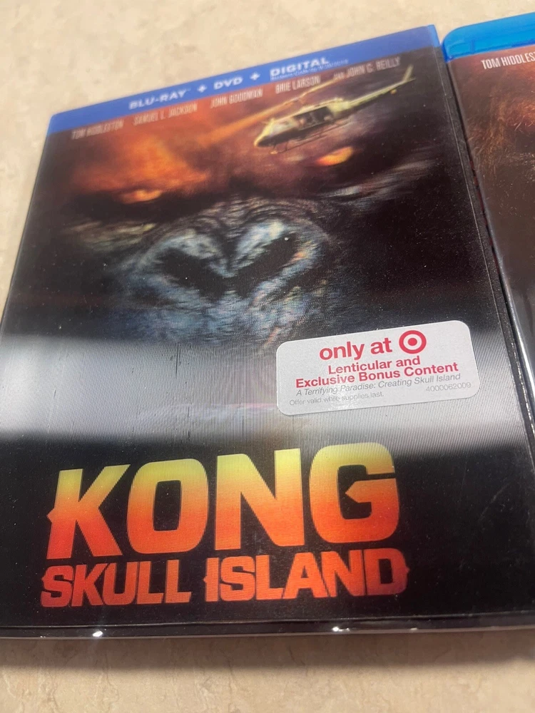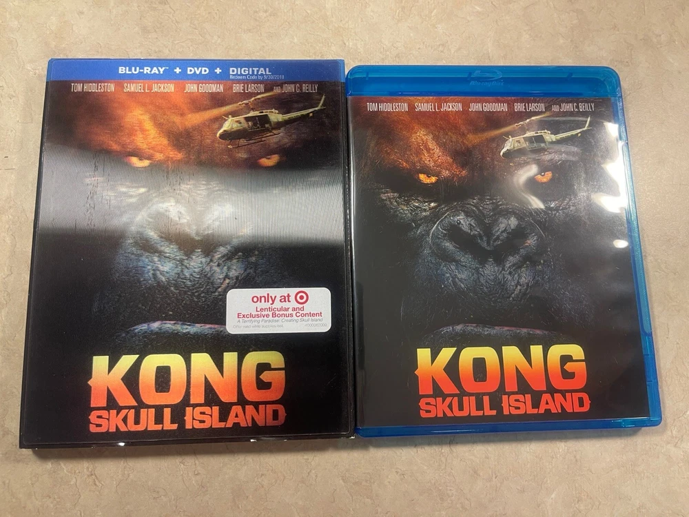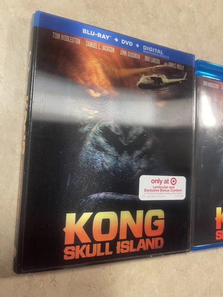 The "Kong: Skull Island" Blu-ray + DVD is a Target Exclusive edition with a unique lenticular slipcover. Directed by Jordan Vogt-Roberts, this action-adventure film is part of the MonsterVerse franchise and was released in 2017. Starring Tom Hiddleston and John Goodman, the movie follows a team of explorers who venture into a mysterious island filled with dangerous creatures, including the iconic giant ape, King Kong. The Blu-ray disc is region-free and includes the English language track.