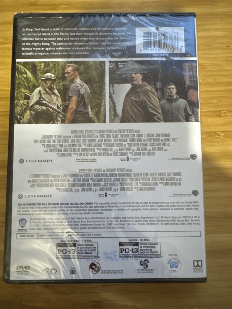 The product is a brand new DVD collection featuring the action-packed films "Kong: Skull Island" and the two-film Godzilla series. Produced by Wea Int'l, this set offers an exciting mix of adventure and drama, perfect for fans of the genres. With this collection, viewers can immerse themselves in the thrilling world of these iconic monster movies.