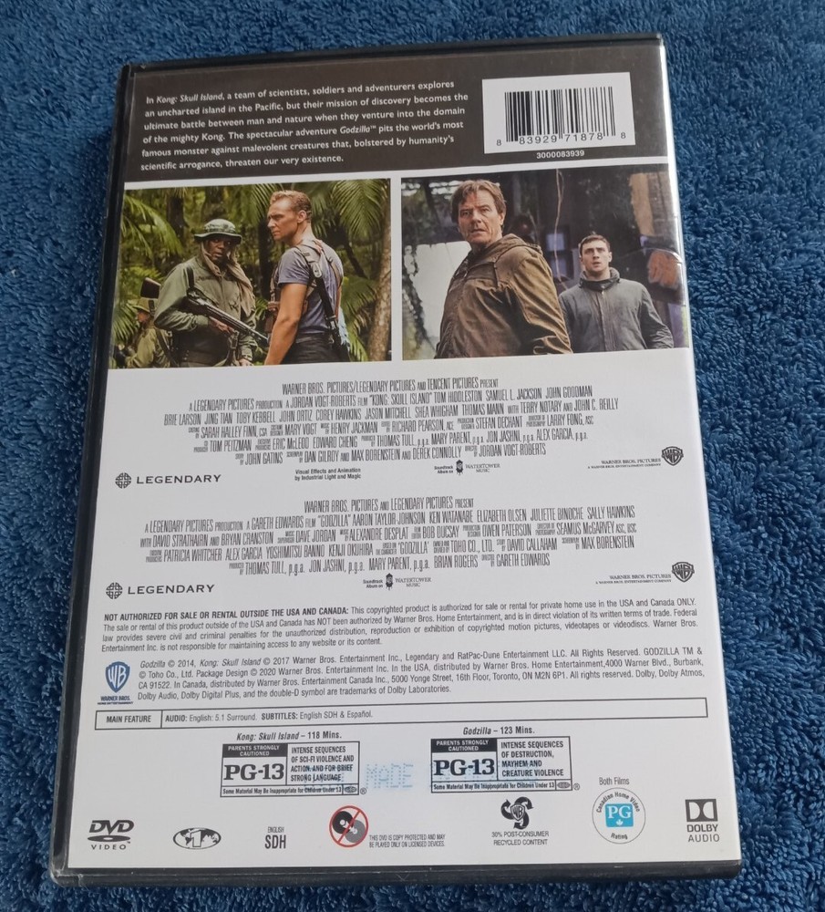 This is a double feature of monster movies on DVD. The movies are the 2014 Godzilla and Kong Of Skull Island. The DVDs are in NM condition. The case is in EX condition. Buyer to pay shipping and handl...