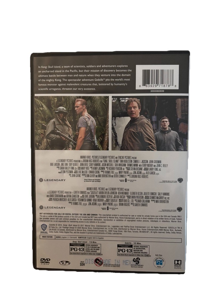 The Kong: Skull Island / Godzilla: 2-Film Collection on DVD features action-packed adventures from the King of Monsters and the iconic Kong. This thrilling set includes two films that will keep viewers on the edge of their seats, showcasing the powerful and legendary creatures in a mix of epic battles and heartwarming moments. With the Wea Int'l studio behind the production, fans can expect high-quality content and impressive visual effects that will bring these beloved characters to life on screen.