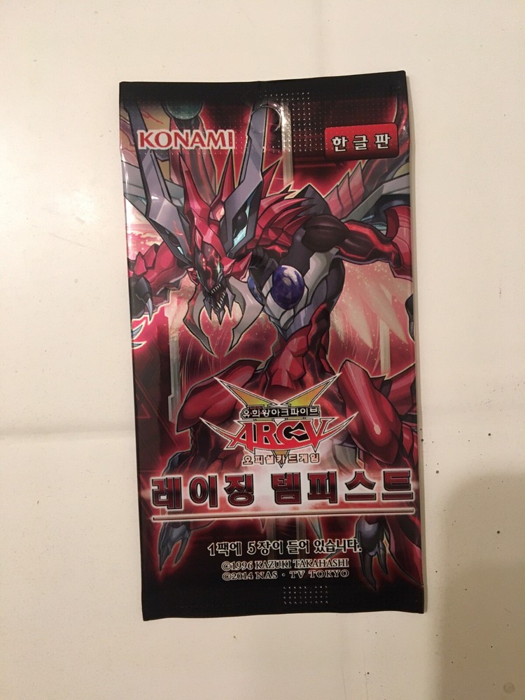 Korean Yugioh! Arc V Raging Tempest Booster Pack. Brand New Sealed 5 Cards Per Pack Korean Yugioh Arc V Raging Tempest Booster Pack Will Be Shipped With Care