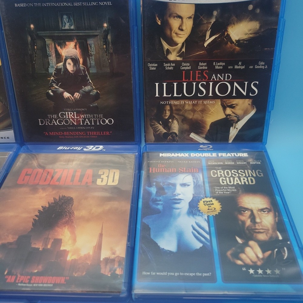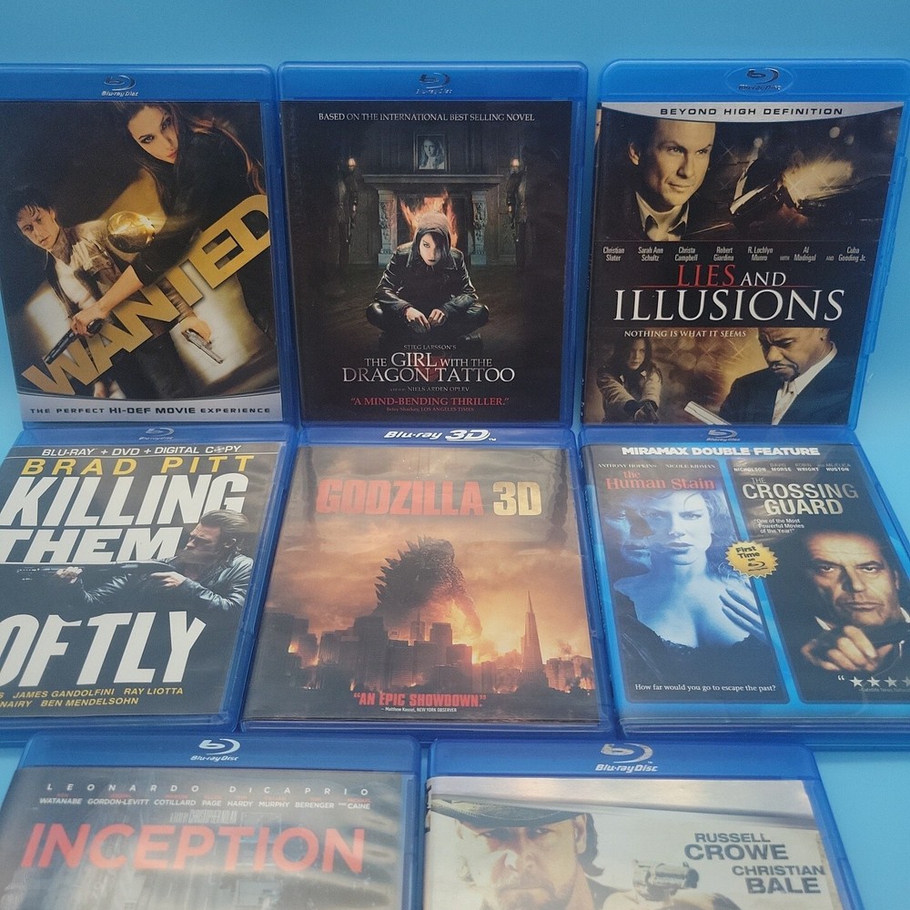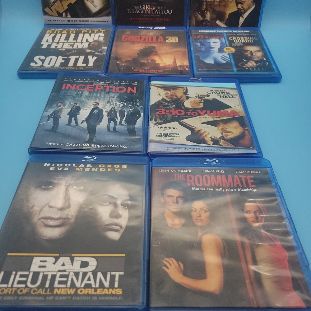 This lot of 10 Blu-ray movies includes a mix of action and drama films, featuring Hollywood stars such as Nicolas Cage, Brad Pitt, Nicole Kidman Christian Slater and Leonardo Dicaprio. The collection includes a variety of editions, including collector's editions, director's cuts, and box sets. The films cover various genres, including action and science fiction with titles such as Godzilla and Wanted, and mind-bending dramas like Inception. All movies are in English language format and are compatible with Blu-ray players. Add these high-quality films to your collection today!