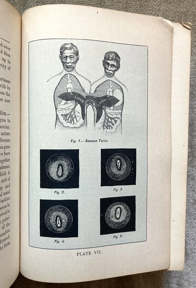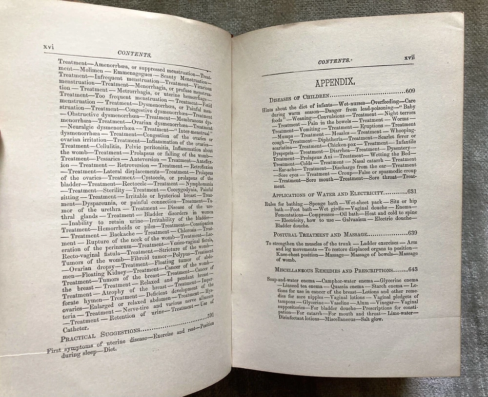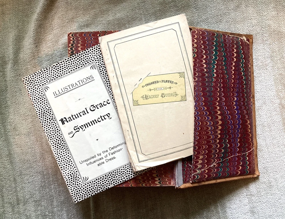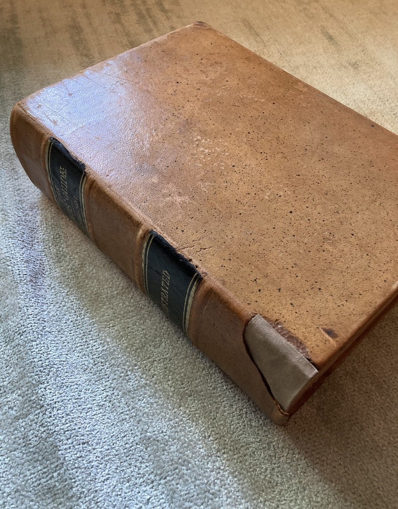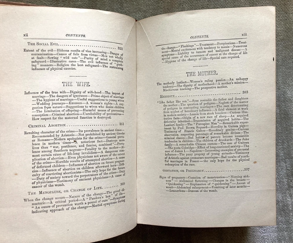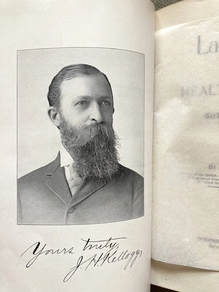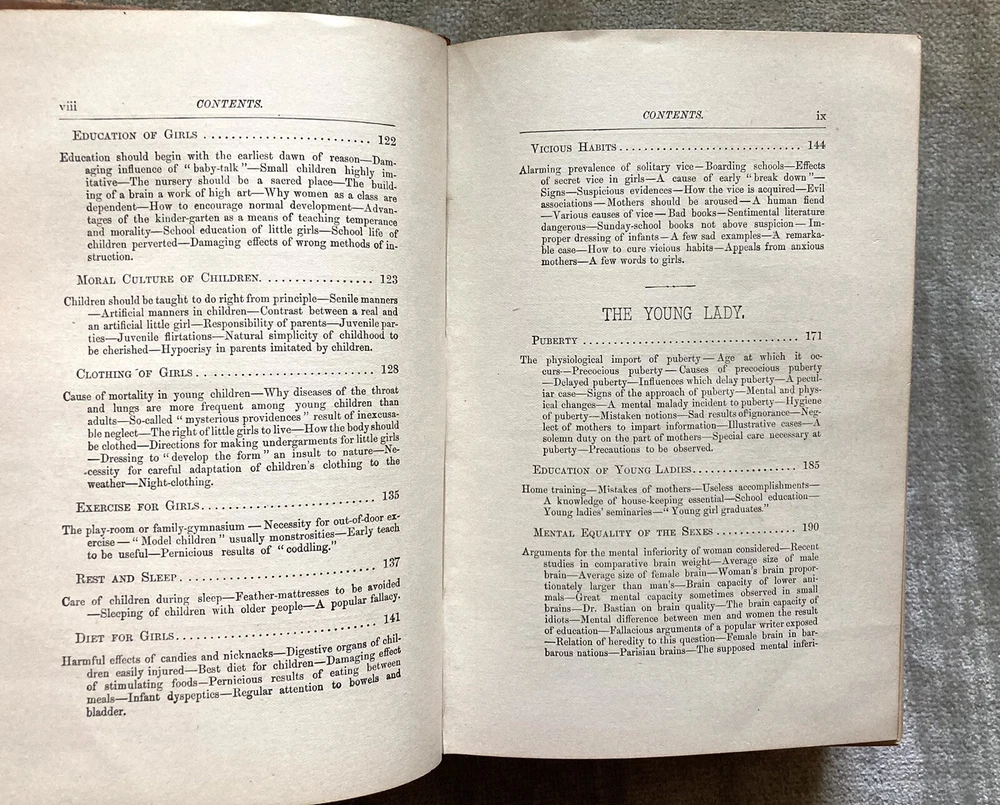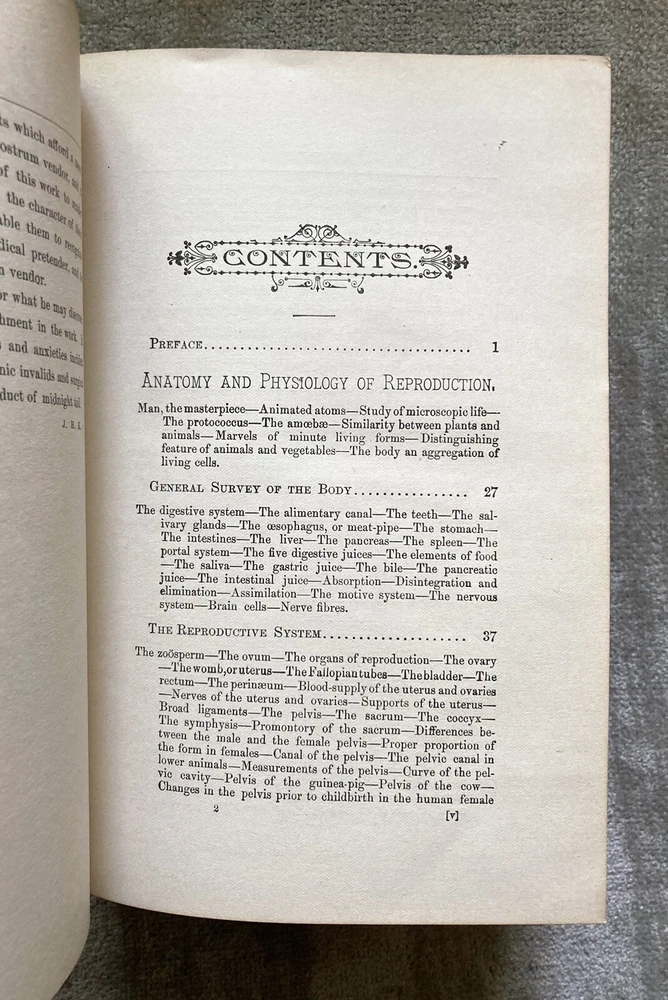 Ladies’ Guide, Antique, Health, Disease, Motherhood, John Kellog, 1900, Illustrated. 690 clean and unmarked pages. Good binding, bumped/scraped corners. A missing piece of the spine cover has been replaced with a book cloth patch. This is a very interesting and fun book for its look at and advice for women’s health at the turn of the century. Some of the information is laughably dated, some, not so much. The front of the book has a very nice overlay style illustration depicting the organization of the major organs. The rear of the book has a pocket containing two small booklets of illustrations dealing with beauty standards and child birth.