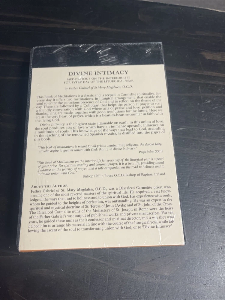 New still sealed Experience the transformative power of prayer with the Leather Edition of "Divine Intimacy: Prayer Book" by Father Gabriel of St. Mary Magdalene. This comprehensive guide to Christian life and devotion offers insightful meditations and reflections that will deepen your relationship with God. With 1216 pages of thought-provoking content, this textbook is perfect for adult and further education, as well as anyone seeking a closer connection with their faith. Published by Baronius Press The Limited, this beautiful leather-bound edition is an essential addition to any religious scholar's collection. Written in English and belonging to the 2013 series, "Divine Intimacy" explores the topics of divination and spirituality, making it a must-have for anyone looking to enhance their spiritual practice.
