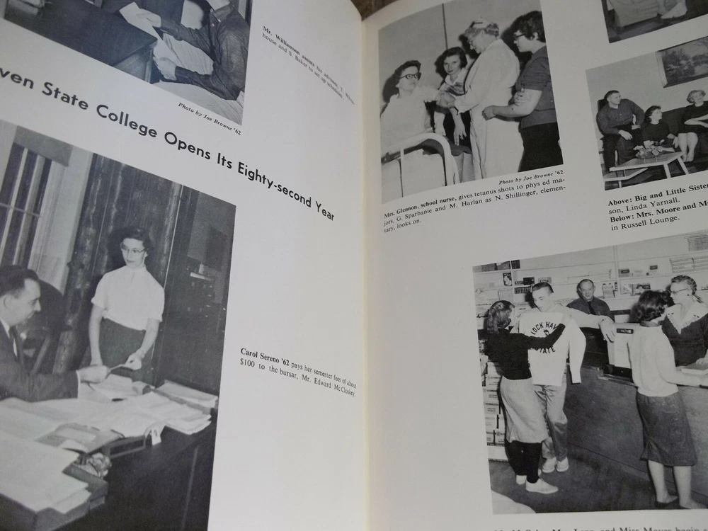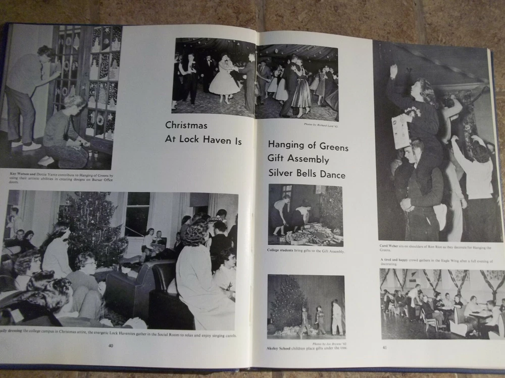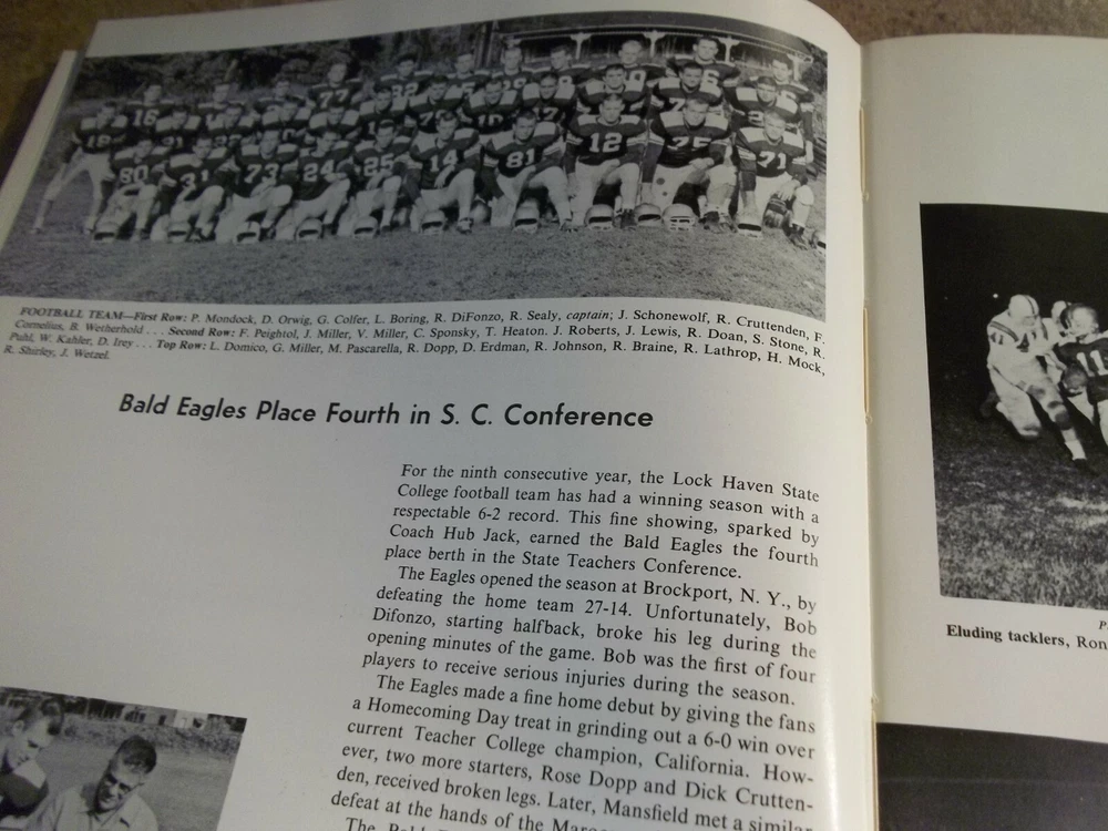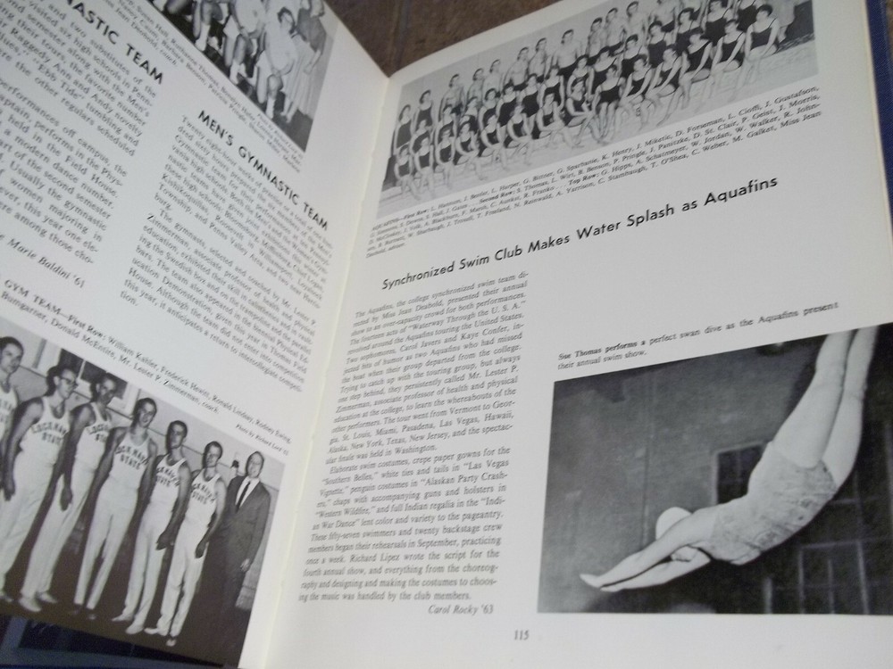 Hi there! You are bidding on a RARE 1960 "PRAECO" black & white PHOTO, YEARBOOK, of LOCK HAVEN STATE COLLEGE, Lock Haven, Pennsylvania, PA. There are dedications to the memories of Mr. Carey Ellsworth March, Dean and teacher of Physical Science, and details of his history, and Mrs. Marcella Burt Williams, alum of Central State Normal School, class of 1923, before the college became known Lock Haven State Teacher's College. This yearbook is dedicated to Dr. F. Clark Skelly, retired in 1960, after 14 years of service, along with his stats and history. Some subjects: many photos of the beautiful campus, Sullivan Hall, administration building, men's new Samuel Smith dormitory, Russell Hall, etc.. first president, Dr. Richard Parsons, dean of men, English teacher, candid home shot, along with a professional photo. 82nd year, Mancy Young, Judy Zell, Pat Mahaffey, art class, Judy Folk, Bernstein symposium, Mr. Pflieger, Silver Bells Dance, Akeley School, Dottie Yantz, Kay Watson, 180 seniors, Lawrence David Boring, health Education, Varsity Club, Football, Kappa Delta Pi: C. Wagner, C. Howell. Delta Rho Beta: John Kreamer, Jay Long. Men and Women's Gym Teams, synchronized Swim Club, Bald Eagles, scores, Booters: J. White, photo of all-American Ray Shelesky, candid shots, and much more! Please check out our feed back! Thanks for looking & God bless!!!!