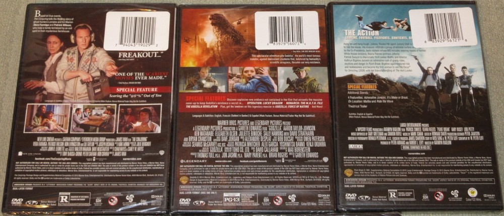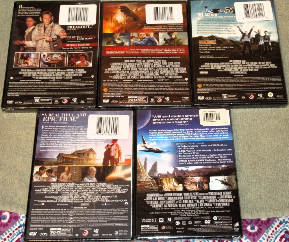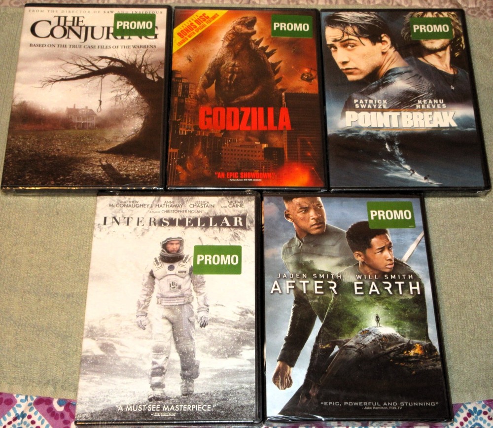 Lot of 5 "PROMO DVDs" Godzilla, Point Break, After Earth, Interstellar & The Conjuring XMAS! All are New & Sealed. Thanks for viewing my auctions....
