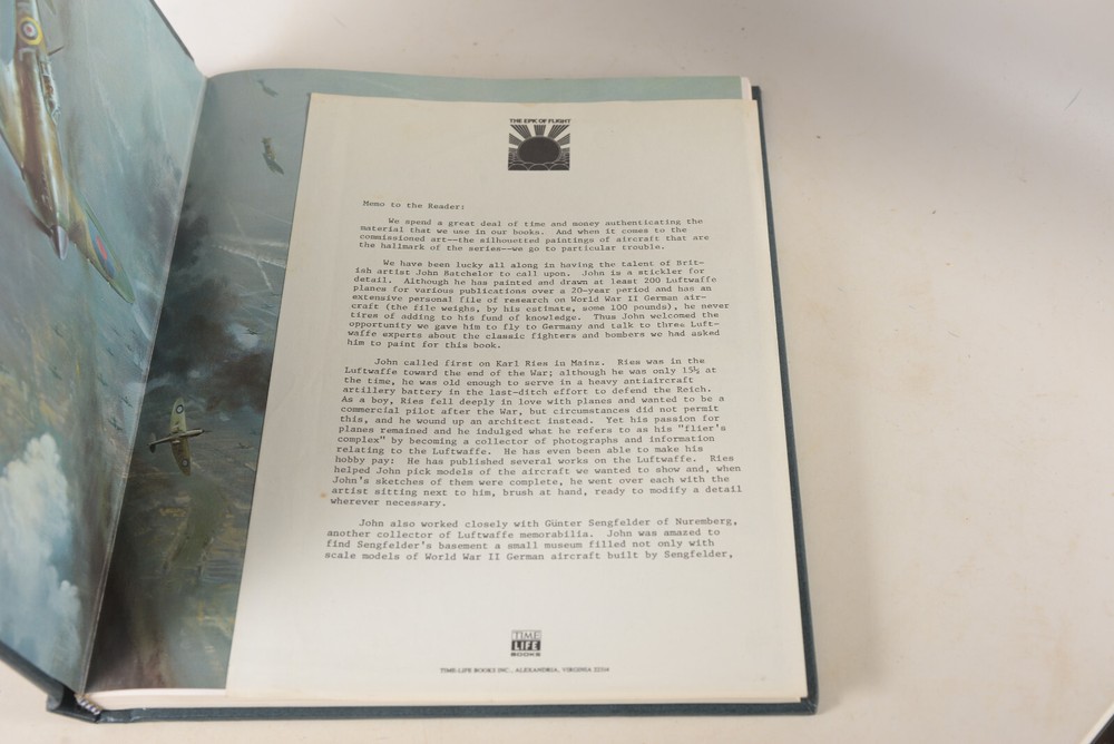 Contains the following books: Fighting Jets The Giant Airships Knights of the Air The Carrier War Architects of Air Power Barnstormers & Speed Kings The Soviet Air Force The Luftwaffe Women Aloft The RAF at War Some have small stains on page edges. One has a small stain on the cover. Some separation in first few pages on "The Soviet Air Force"