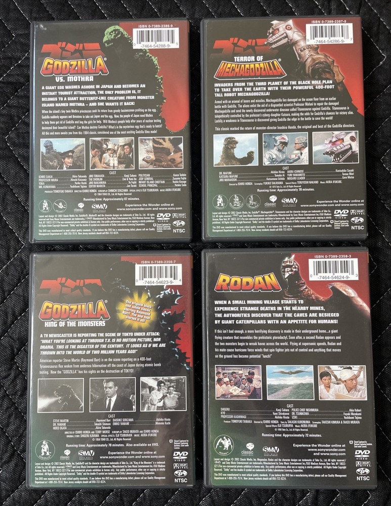 Lot of 4 Godzilla DVD's - vs Mothra/Rodan/Godzilla King Monsters/Mechagodzilla