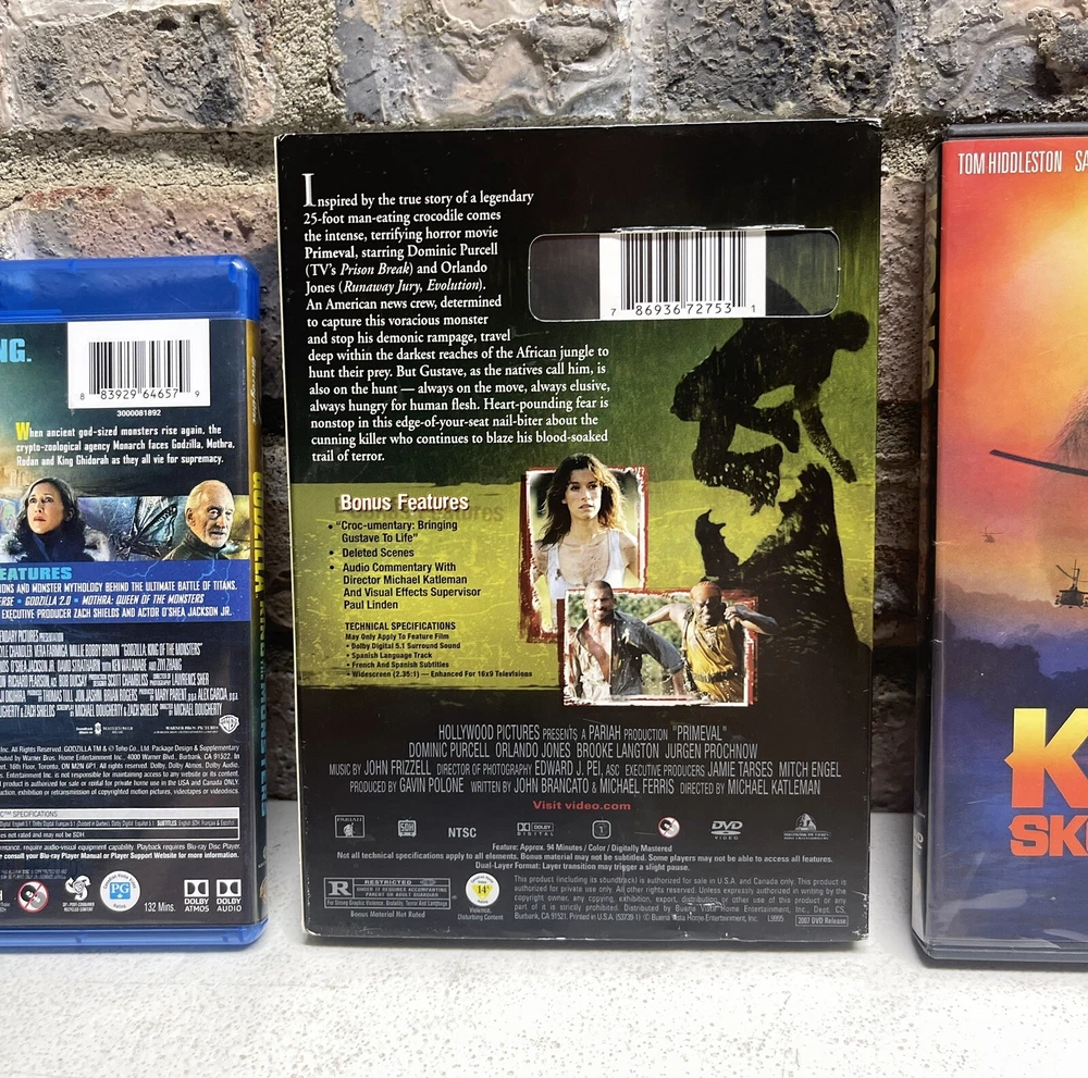 Get ready for a thrilling movie experience with this lot of four DVDs/Blu-Ray discs featuring some of the most iconic monster movies of all time! Immerse yourself in the world of horror with King Kong, Godzilla, and more. These DVDs come in tall/DVD cases and some are rated R, making them suitable for mature audiences only. With a variety of features such as commentary, behind the scenes featurettes, deleted scenes, and alternate endings, this collector's edition set is perfect for any horror movie fan. The DVDs are in English language and have subtitles available for those who need them. Don't miss out on this amazing opportunity to add some classic monster movies to your collection.