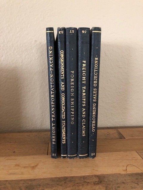 Nice set of 5 books from the International Textbook Press for the Institute of Business Science. Publication dates range from 1921-1926. They include '' Freight Transportation Packing"-1923, '' Consignment and Consolidated Statements" -1923, " Foreign Shipping" - 1921, "Freight Tariffs and Claims" - 1923, and "Overcoming Sales Objections" - -1926 All books are in very good condition with very little signs of wear. These are hardcover books. Please see photos.