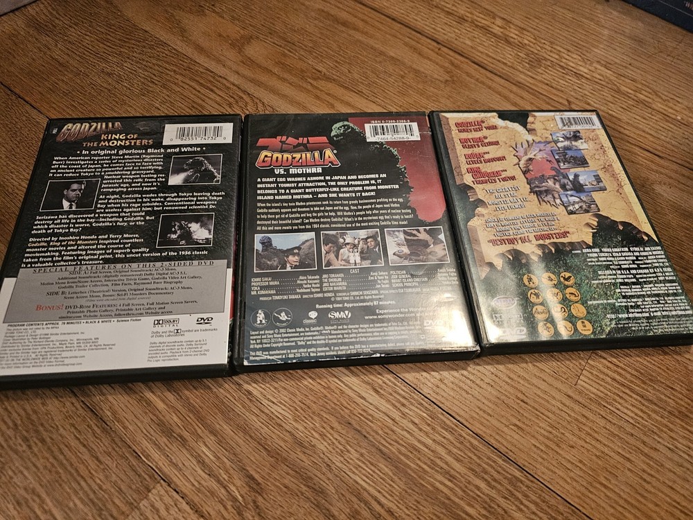 Lot x3 Classic Godzilla Gojira vs Mothra, Destroy All, King of Monsters DVDs. Condition is Very Good. Shipped with USPS Media Mail....