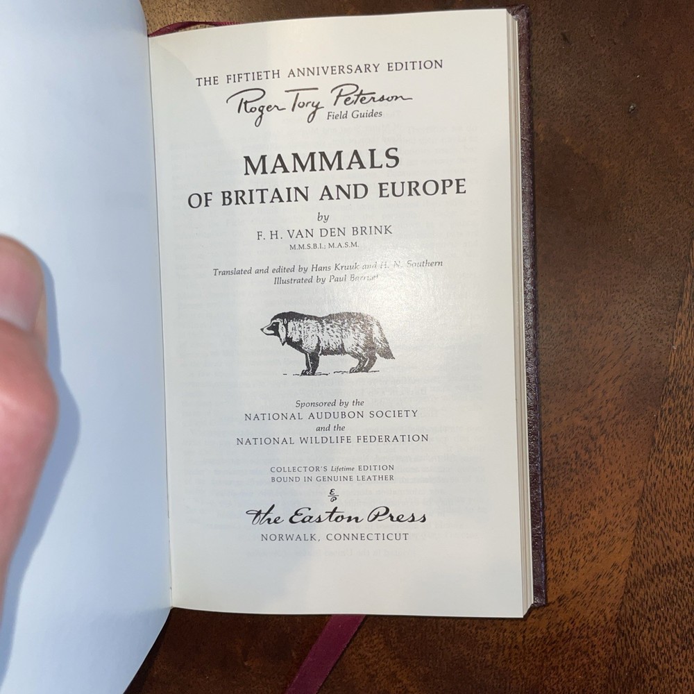 MAMMALS OF BRITAIN AND EUROPE Easton Press LEATHER Peterson Field Guide - 50th...