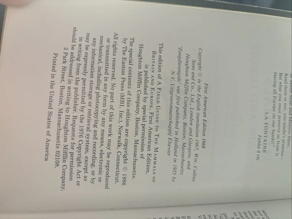 MAMMALS OF BRITAIN AND EUROPE Easton Press LEATHER Peterson Field Guide . I don’t see any major damage. There is a little bit of wear as shown in the photos. Please see photos. Let me know if you have...