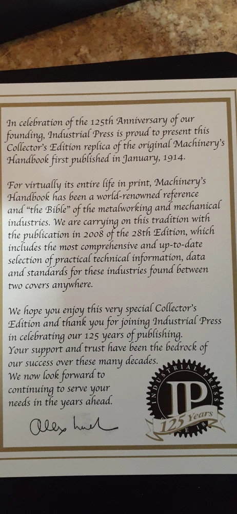This is a must-have for any machinist or engineer! The Machinery's Handbook Collector's Edition is packed with essential reference material, and the leather-bound 2008 version is both durable and classy. The seller is super responsive—great customer service and a smooth buying experience. Definitely worth it for professionals and hobbyists alike!