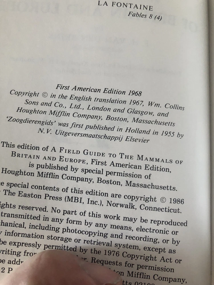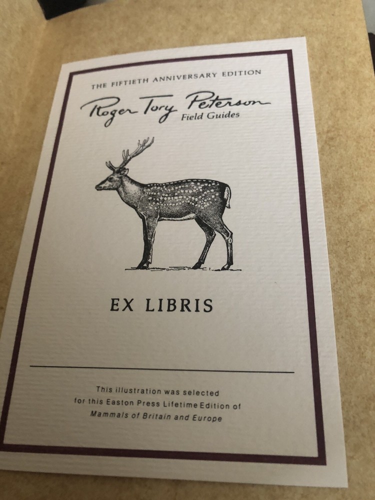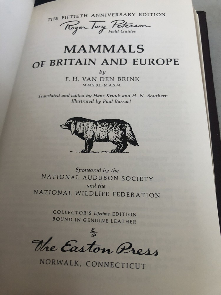 Here is a neat Mammals of Britain and Europe Roger from Tory Peterson Field Guide Easton Leather. It is marked 50th Anniversary Edition on a card inside. Thanks. I have others and will combine shipping.