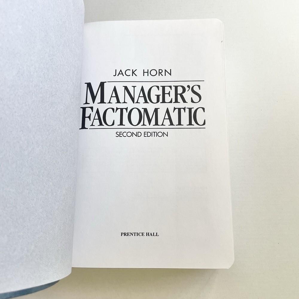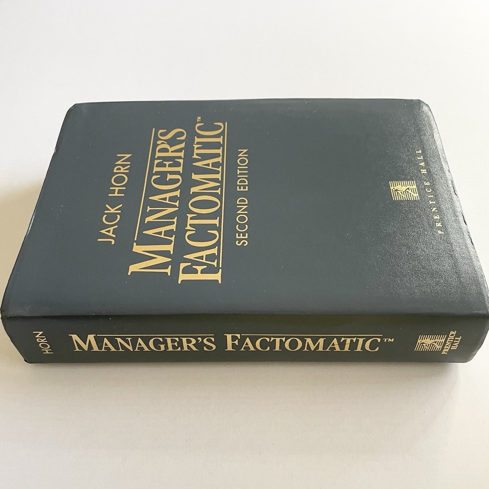 Manager's Factomatic Second Edition by Jack Horn - 1992 Leather Bound Book. Pre-owned condition leather-bound book, PLEASE SEE PHOTOS. Used copy, remains in good condition. All pages and cover intact. The spine and cover may show signs of wear. Pages may include notes and highlighting and show signs of wear, and the copy can include labels or previous owner inscriptions. Shipped with delivery confirmation via media mail. Please follow our store and check out all of the other vintage paperbacks we sell! We appreciate your business!