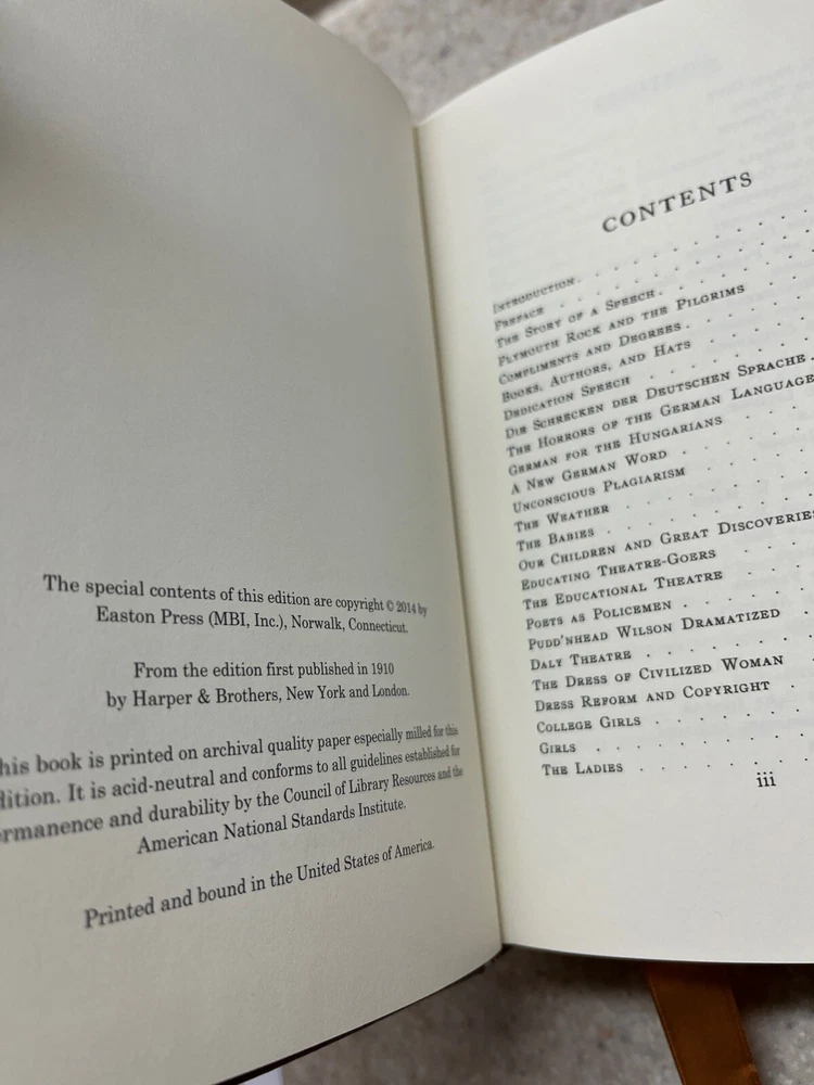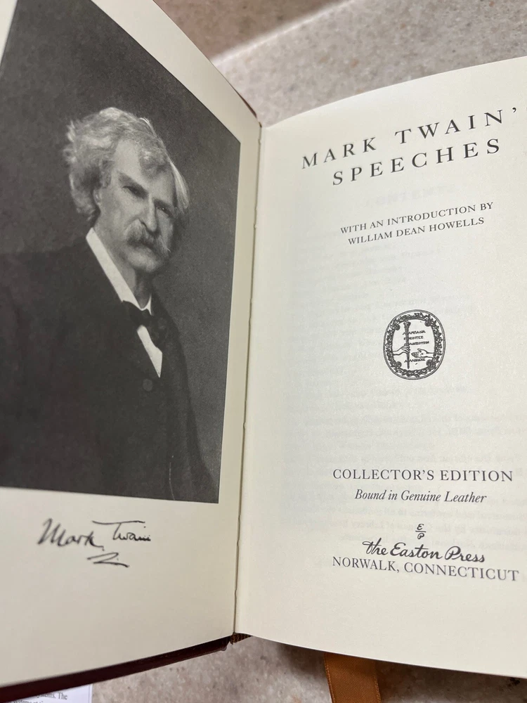 Mark Twain’s Speeches Easton Press Collector’s Edition 2014 Leather Bound Hardcover with introduction by William Dean Howell. In very good used read condition with Easton Press collector’s name plate ...