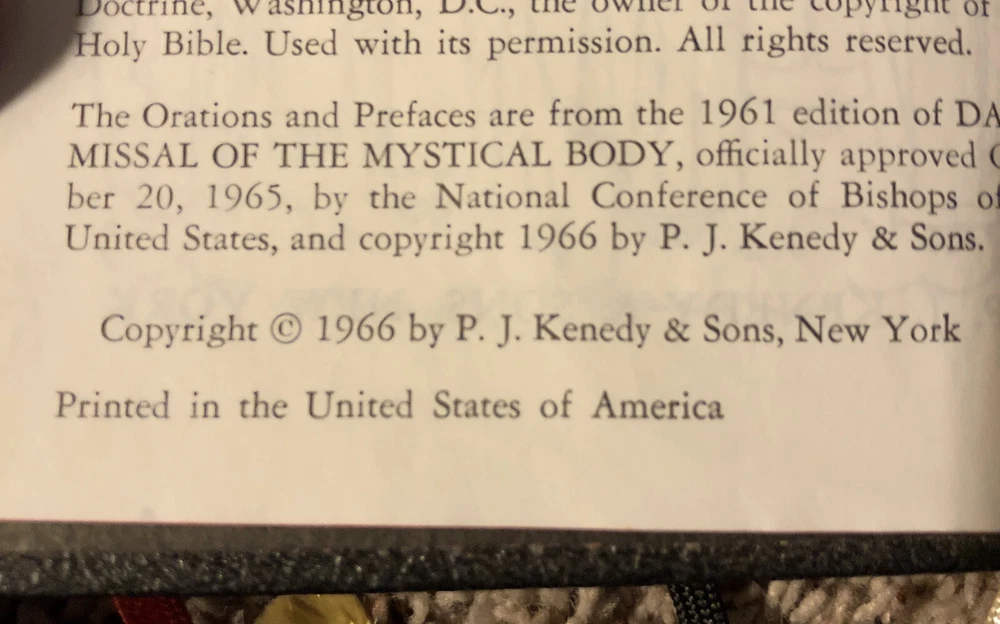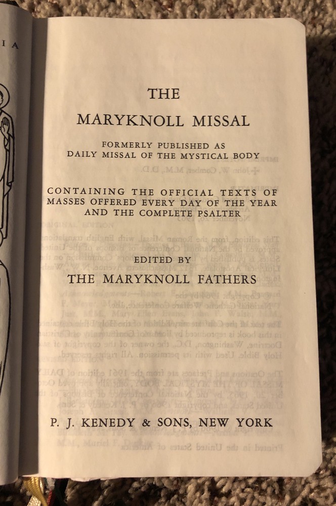 Maryknoll Missal 1966 Vatican II Ed PJ Kenedy & Sons NY Black Hard Cover. Shipped with USPS Media Mail.