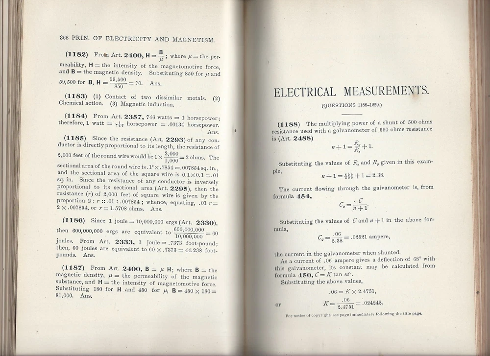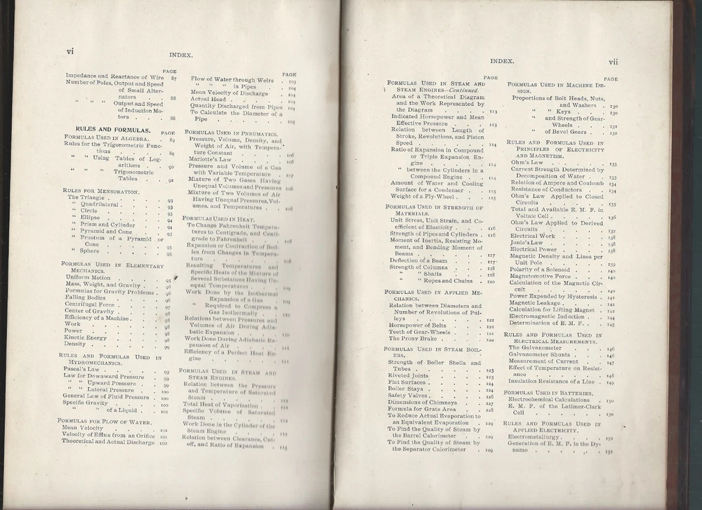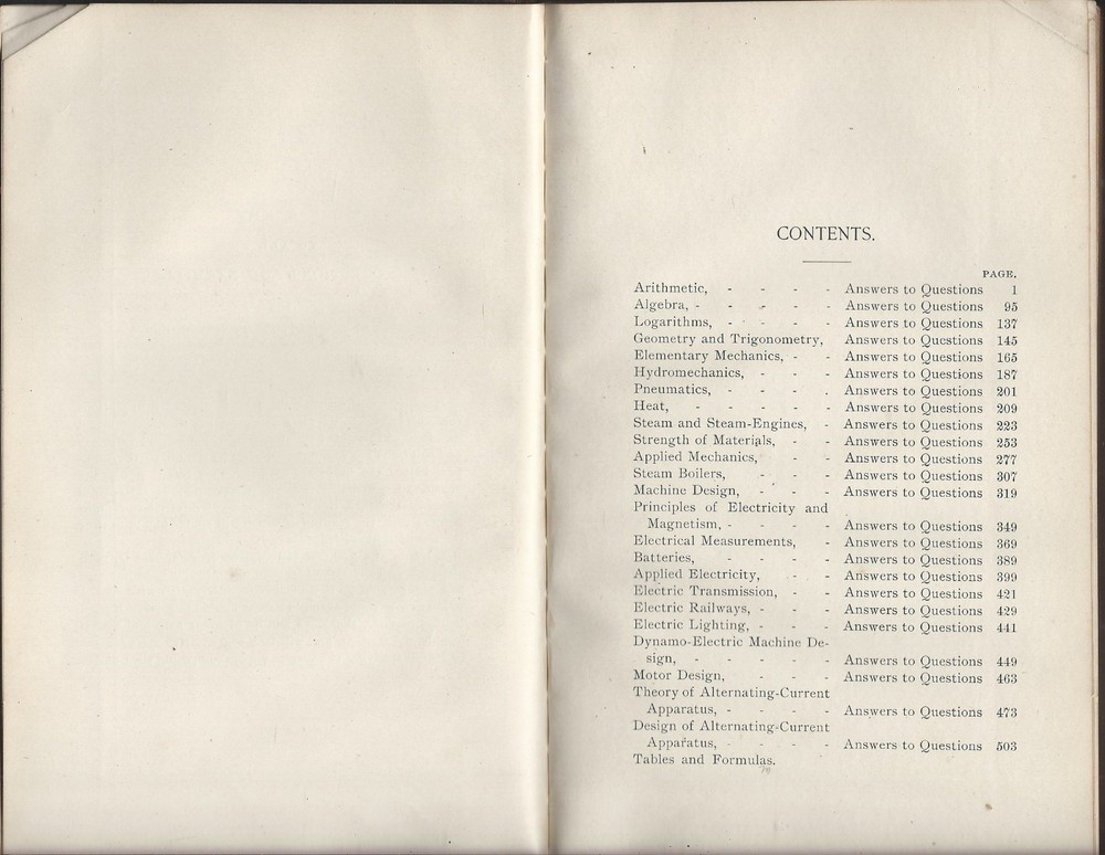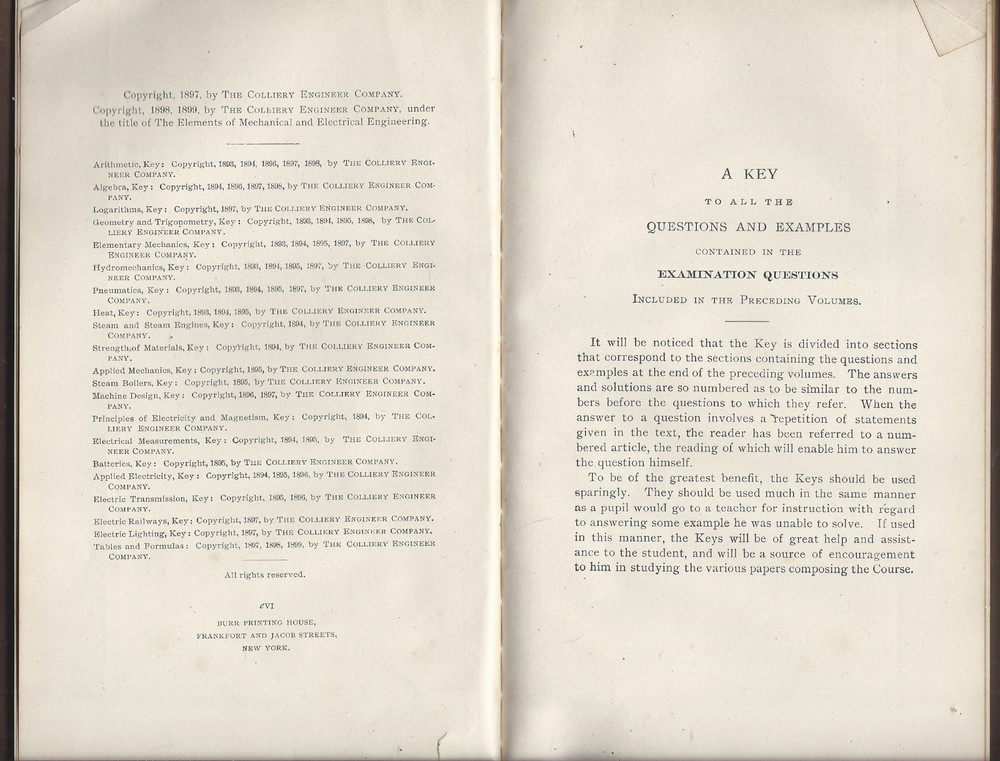Mechanical and Electrical Engineering, answers to Questions, includes tables and formulas published by the International textbook company, 1899 international correspondence schools 525 pages of general mechanical and electrical engineering information 177 pages of tables and formulas the edges feature wear that includes some edge chippings, creases a split and tear at the base of the outer spine cover No rips or missing pages no writing or stamps, not an ex-library copy no dust jacket, as issued 5-3/4 x 9 inches rectangular the spine and pages are strong some page toning, and discolorations here or there around the text From a smokefree, not petfree environment ****please refer to the photos as part of the items description **email with any questions From a smokefree, not petfree home *please review shipping options: domestic mail : First class mail- 3-7 days estimated with limited guarantees, parcel post- 7 to 10 days with no guarantees, priority mail- 1-3 days guaranteed, express mail- 1-2 days guaranteed. first class and parcel post ship with delivery confirmation- this confirms the item was delivered, but does not track the package. Priority and Express mail included full tracking service, Express mail includes $100 in insurance in the cost. international mai l - Express mail: 5-14 days guarantees, tracking and insurance up to $100 included, customs can delay the package beyond this, but it is rare. Other methods cost less, most of the time they arrive within 30 days, even with customs delays. But I have had several rare packages take several months to arrive at the destination. Since the other methods do not include tracking, I do not know where they are, until they reach their destination. For this reason, I do not offer international shipping with any other method than Express mail. Purchaser is responsible for any customs fees or taxes. Please contact us with any questions, Thank you for looking!